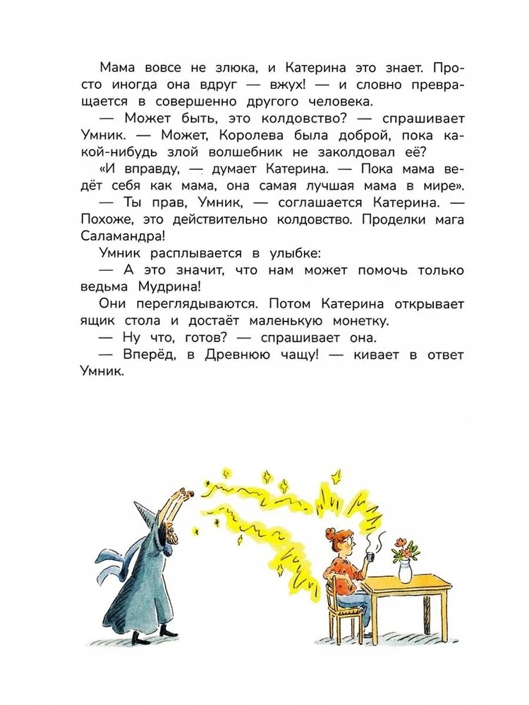 Катерина считает свою мать королевой – иногда злой, иногда доброй. В их доме живёт швейцар – людоед Прохвост, а город населён драконами, ведьмами и рыцарями. Вместе с эльфом Умником Катерина отправляется на поиски средства, которое поможет снять с мамы заклятие, наложенное злым волшебником Саламандром. На своём пути Катерина встречает дракона Клыка, юного рыцаря Ланселота, ведьму Мудрину и фею Сластину.