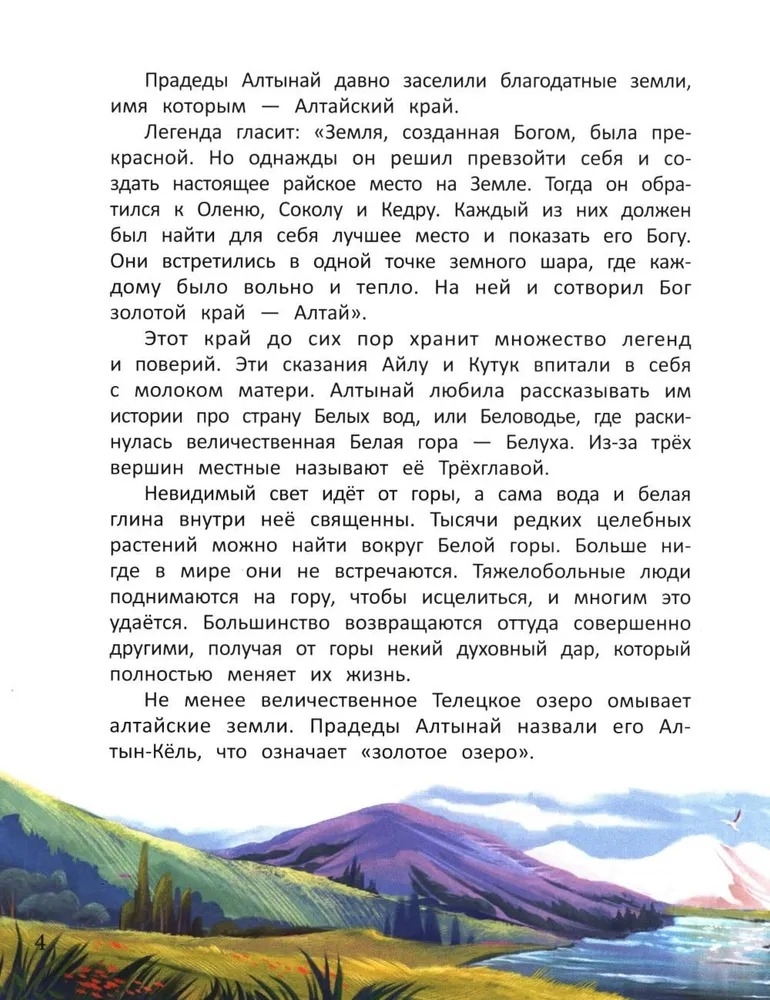 Кутук и Айлу – внуки мудрой хранительницы алтайских легенд Алтынай. Чтобы попрощаться с бабушкой, ребята отправляются в легендарную страну света и добра Беловодье, раскинувшуюся у подножия Белой горы. Во время путешествия героям придётся преодолеть множество испытаний, проявить мужество и отвагу, ведь только человек с чистым сердцем может взойти на Белую гору.