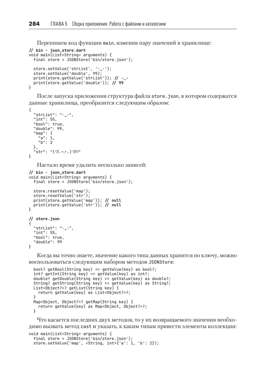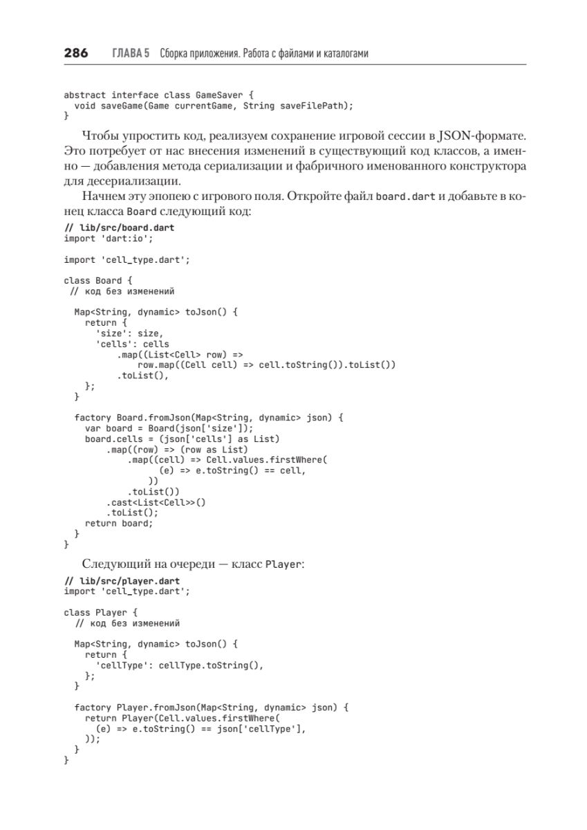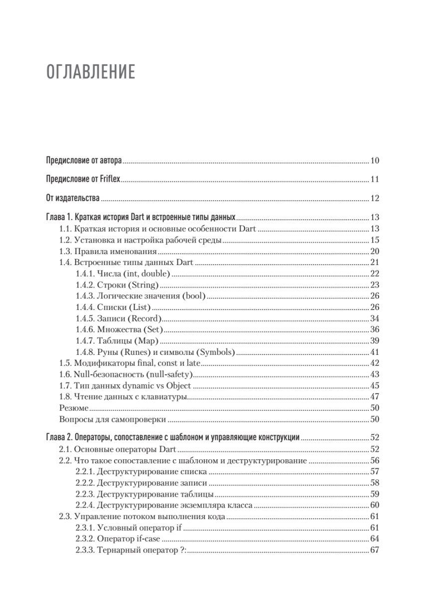 В главе 2 вас ждет проект, который будет изменяться и расти вместе с вашими знаниями и навыками, а к главе 6 преобразится в полноценное клиент-серверное приложение. После каждой новой итерации проекта, вас будут ждать предложения по внесению изменений в его кодовую базу, что позволит прокачать свои hard-скиллы. Исходный код рассматриваемых в книге примеров можно найти в GitHub-репозитории автора (весь код в книге соответствует Dart 3.4).