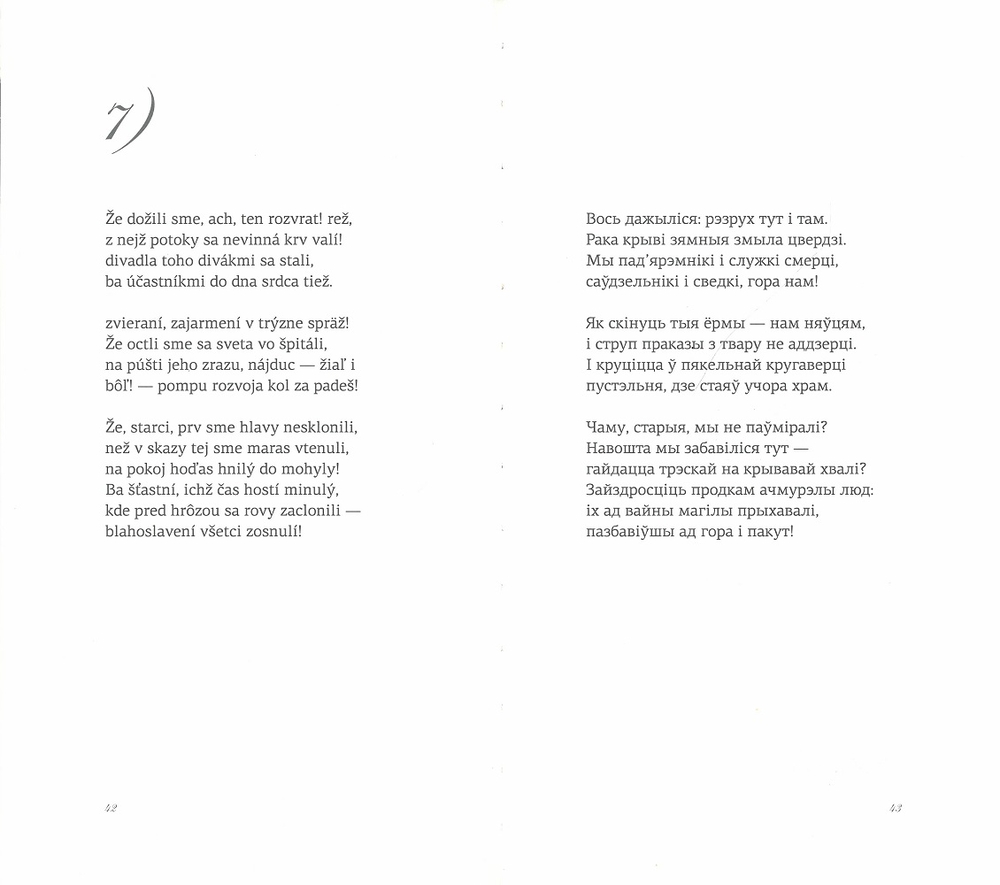 Антываенны цыкл славацкага паэта Павала Орсага Гвездаслава (1849–1921) напісаны ў 1914 годзе і прысвечаны жахам і бедствам, якія прынесла еўрапейскім народам Першая сусветная вайна. 32 санеты сталі ўзорам стаўлення да тэмы вайны ў славацкай паэзіі часоў Другой сусветнай вайны. Вайна для Гвездаслава не прыватны гістарычны выпадак, а сусветная катастрофа. Тэксты публікуюцца на славацкай мове з паралельным перакладам на беларускую. Выданне адрасаванае ўсім аматарам еўрапейскай і ў яе кантэксце – славацкай паэзіі.