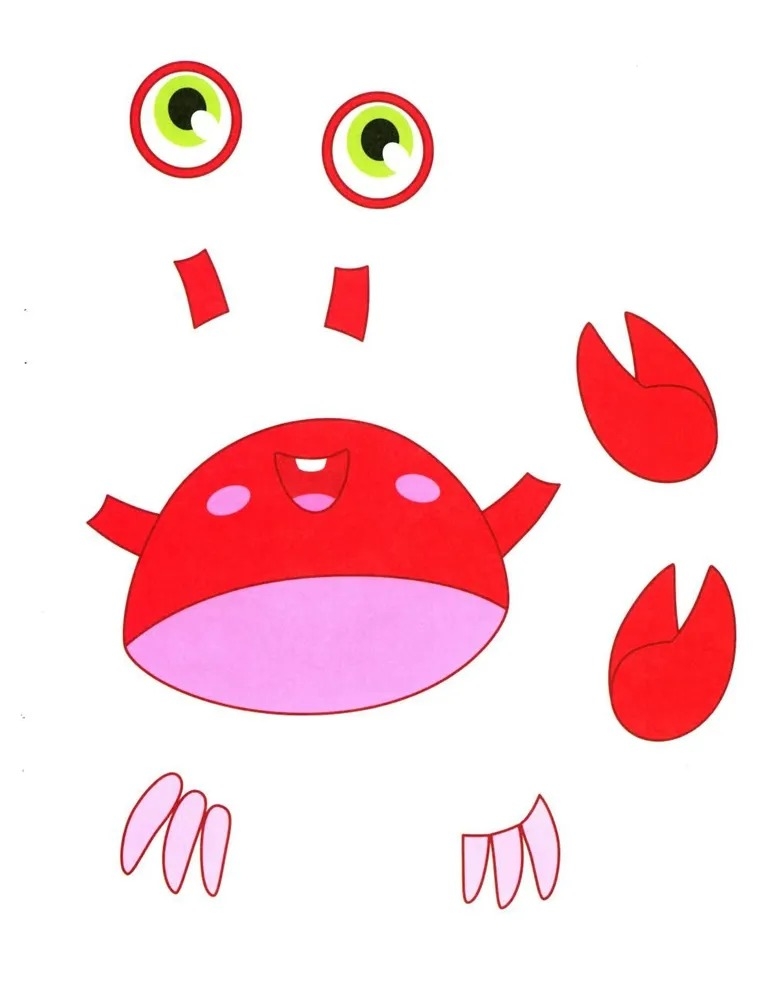 Для создания аппликации вам потребуется клей и ножницы – вырезайте детали и наклеивайте детали на основу, следуя схеме.