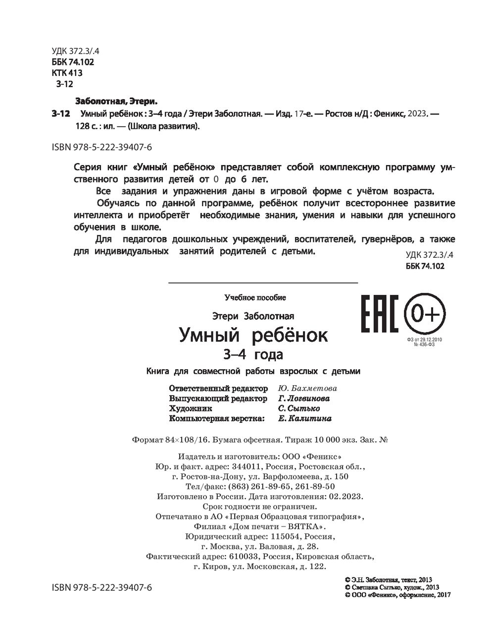 | Изготовитель | ЗАО "Издательство "Феникс". 190000, РФ, г. Санкт-Петербург, пер. Антоненко, 2 |