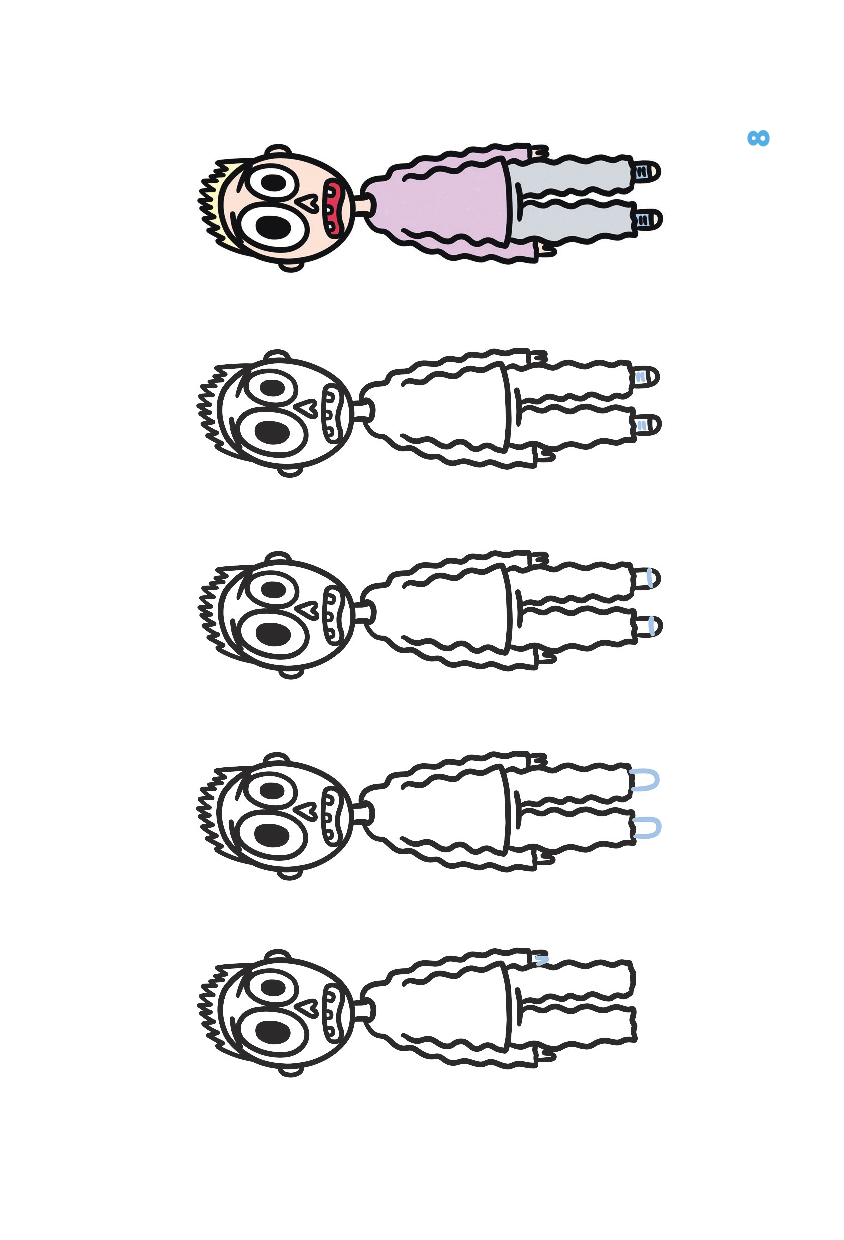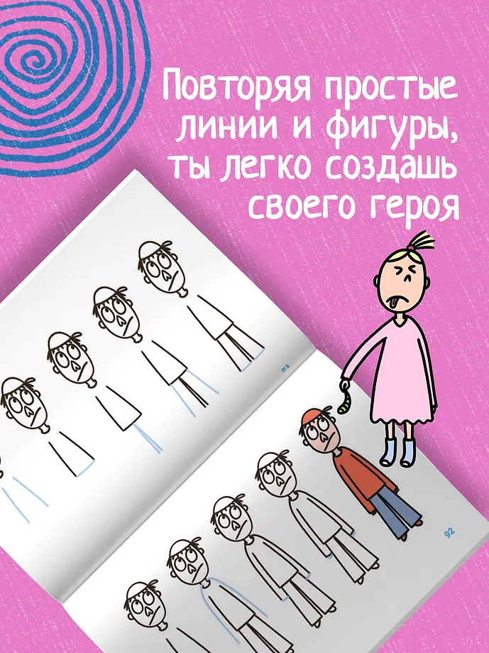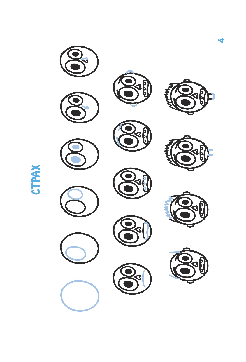 Это не просто блокнот для рисования. Это антистресс, арт-терапия и доза юмора в одном. Веселые задания от Fevrony помогут разбудить фантазию и превратить рисование в игру. Повторяя простые линии и фигуры, ты легко получишь своего героя. А немного изменив или совместив схемы, сможешь сделать его уникальным!