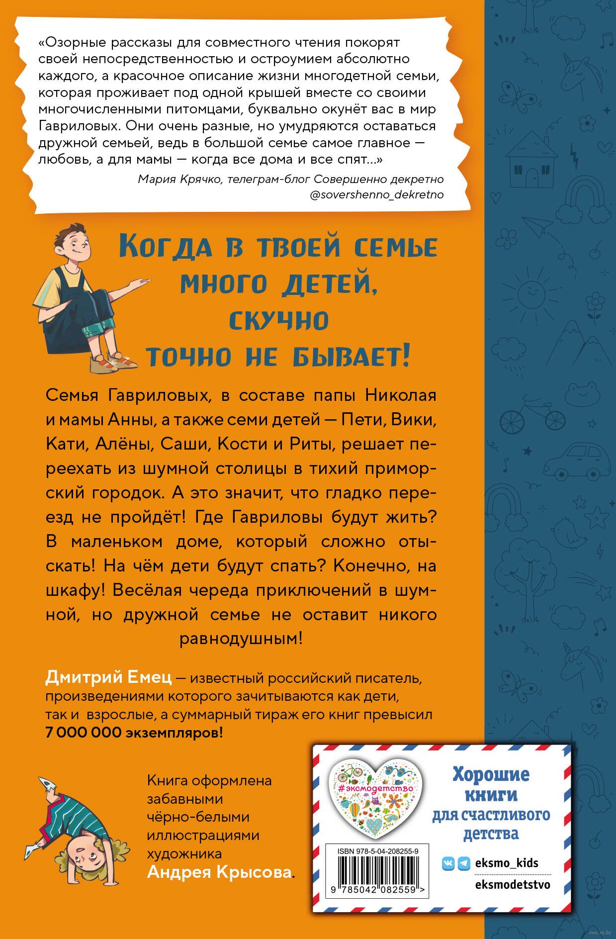 Семья Гавриловых, в составе папы Николая и мамы Анны, а также семи детей – Пети. Вики, Кати, Алёны, Саши, Кости и Риты, решает переехать из шумной столицы в тихий приморский городок. А это значит, что гладко переезд точно не пройдёт! Где Гавриловы будут жить? В маленьком доме, который сложно отыскать! На чём дети будут спать? Конечно, на шкафу! Весёлая череда приключений в шумной, но дружной семье точно не оставит никого равнодушными!