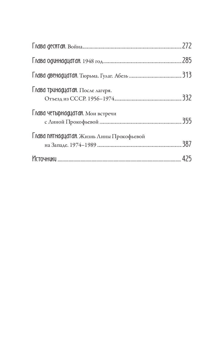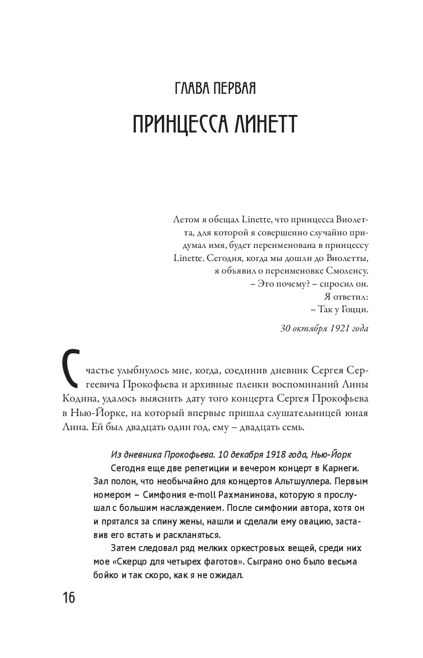 Первая жена великого русского композитора Лина Кодина-Прокофьева прожила длинную, почти в целый век, жизнь. Она вместила двадцать лет жизни с Прокофьевым в Америке, Европе, а потом в Советском Союзе, общение с Рахманиновым,