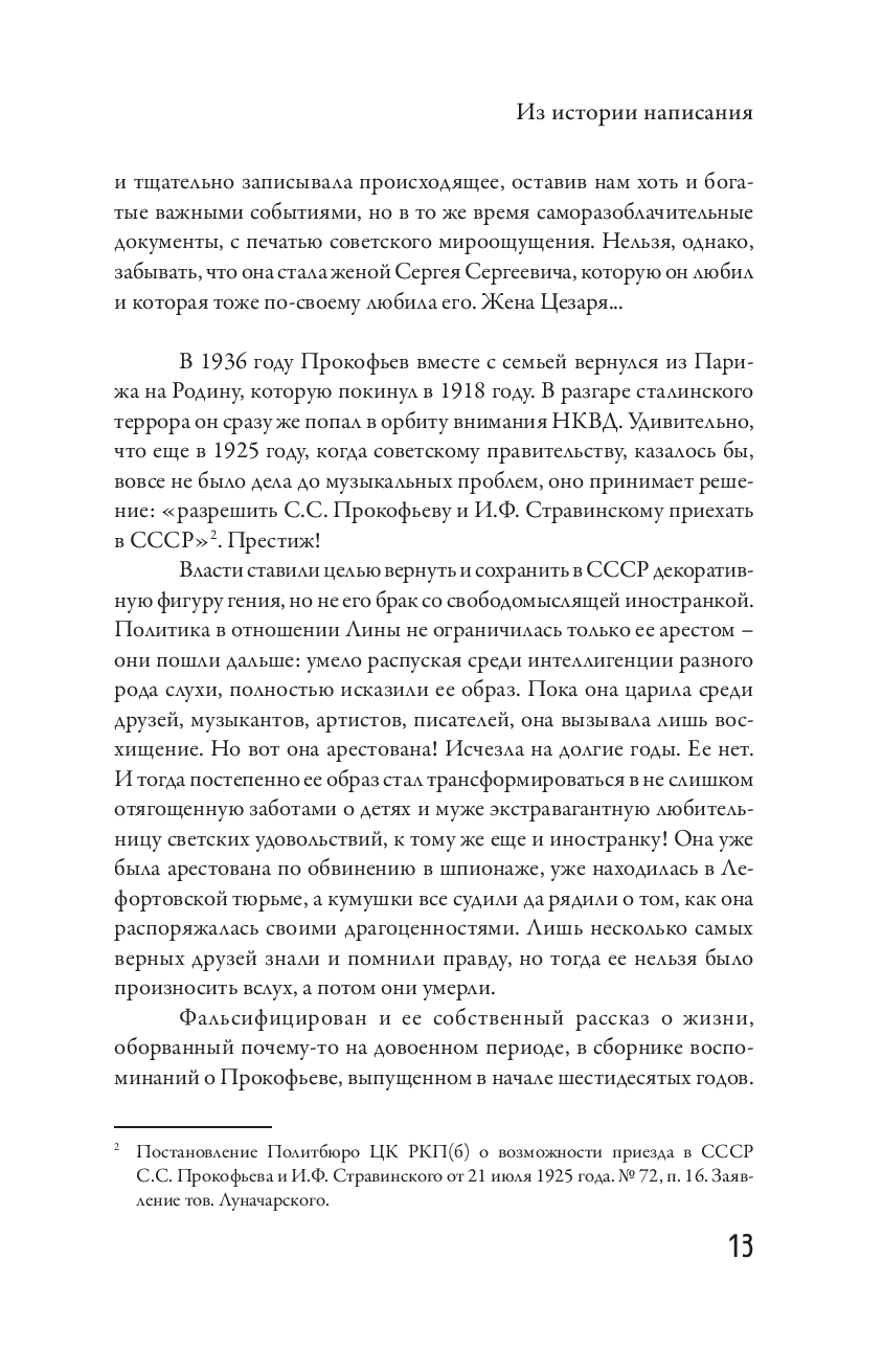 Она была выдающейся личностью, достойной своего гениального супруга. Однако до самых последних лет мы ничего не знали о ней: советская цензура вычеркнула Лину и из жизни Прокофьева, и из истории.