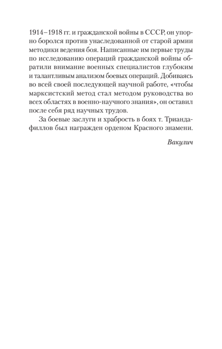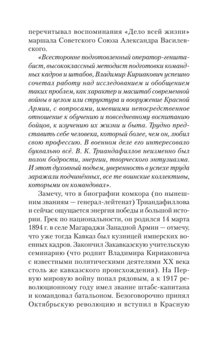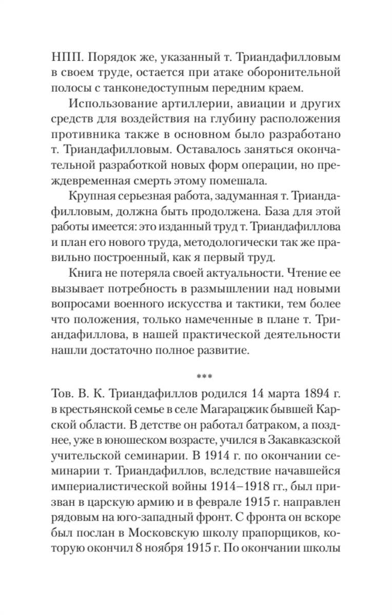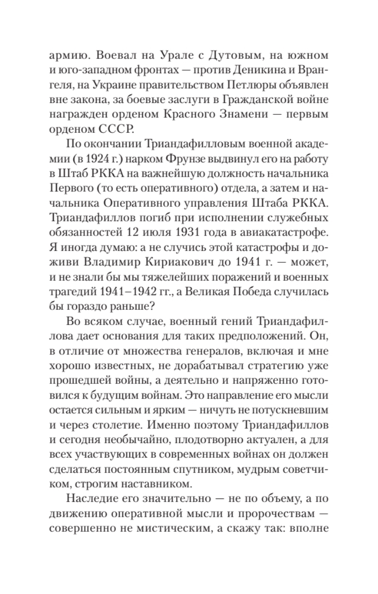 Почти 100 лет назад впервые вышла книга отца-основателя советского оперативного искусства Владимира Триандафиллова, зарекомендовавшая себя как базовый источник знаний об оперативном искусстве на все времена. В свое время этот труд стал учебником для командного состава РККА. Книга не потеряла своей актуальности: если при чтении менять устаревшие названия оружия на современные, то можно спрогнозировать развитие военной промышленности на ближайшие 50 лет.