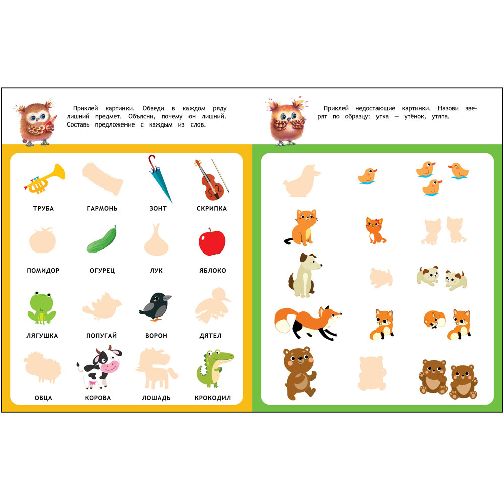 Все эти возрастные особенности были учтены при составлении этого пособия. Лист с наклейками, необходимыми для выполнения заданий, находится в середине книги.