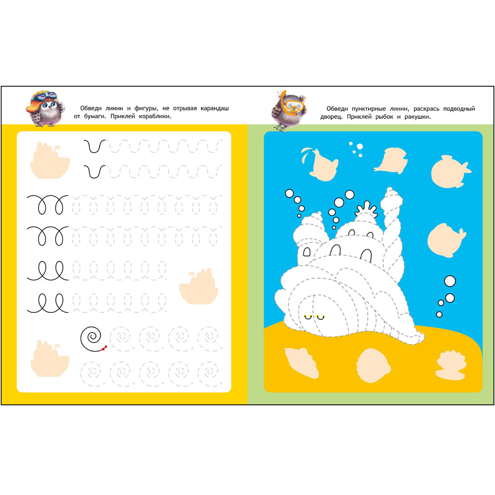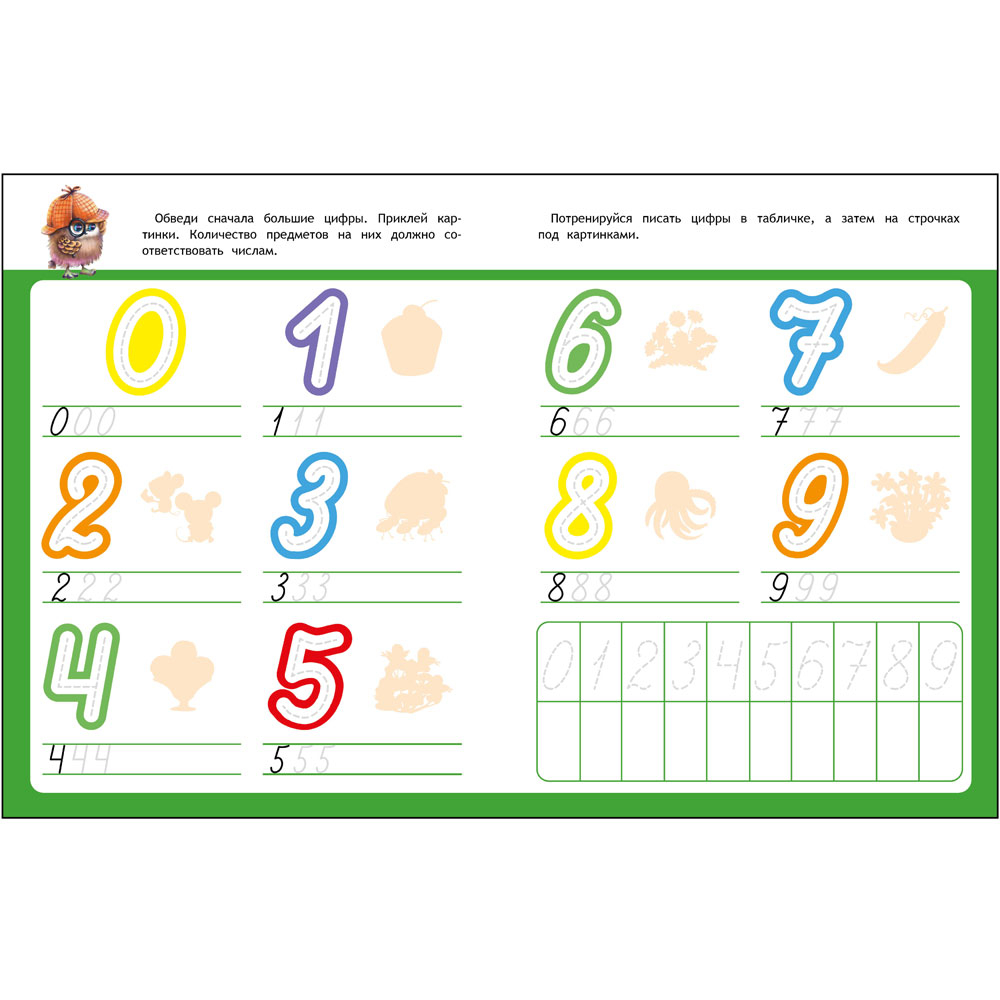 В конце пособия ребёнок потренируется писать цифры и буквы. Наклейки помогут вам внести в процесс обучения игровой момент. Лист с наклейками находится в середине книги.
