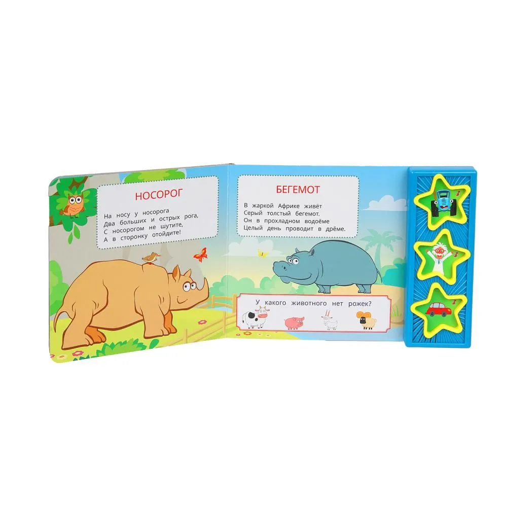 Ребёнок с удовольствием будет листать плотные страницы, рассматривать яркие картинки, вместе с родителями читать интересную историю по мотивам мультфильма и, конечно, нажимать на кнопки и слушать весёлые песенки. Малыш легко освоит включение звука: по нажатию на кнопку песенка включится, при втором нажатии выключится, при третьем – заиграет следующая композиция. На одной кнопке по несколько песенок. Благодаря компактному размеру книгу удобно взять с собой в дорогу.