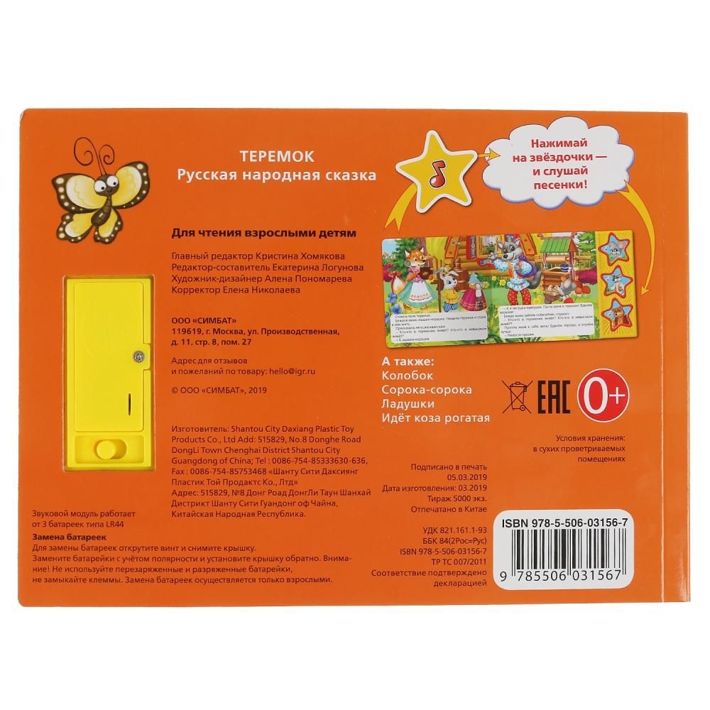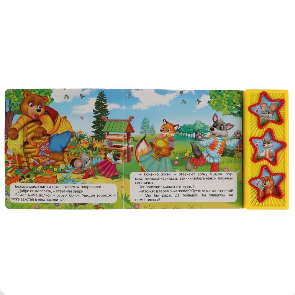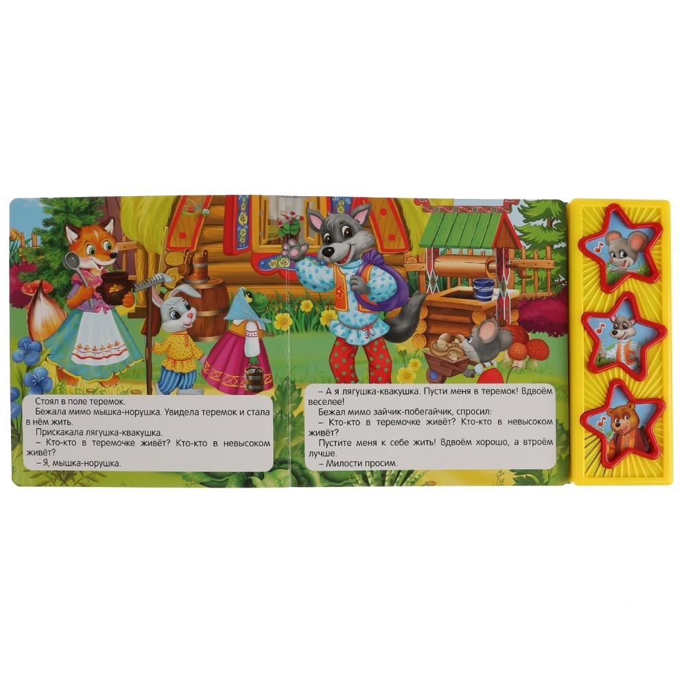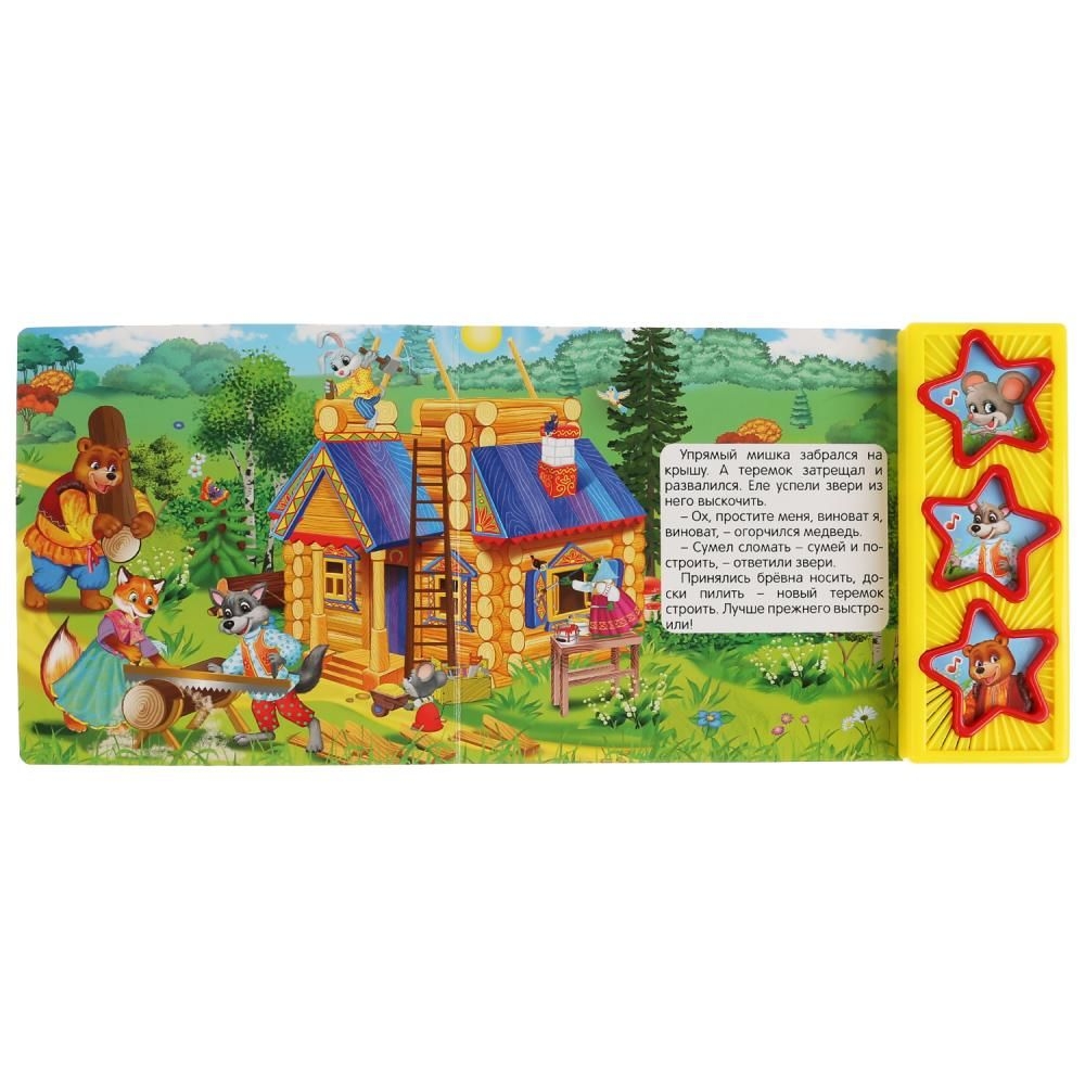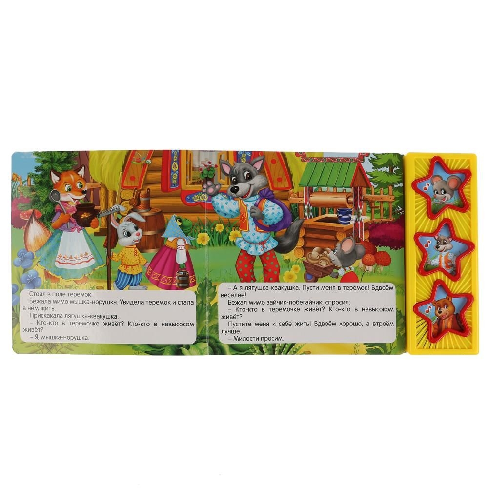 Малыш будет с удовольствием рассматривать яркие страницы, читать сказку вместе с родителями и слушать песенки. Нажимай на звёздочки и слушай песенки. Книжка сделана из плотного картона, поэтому родители могут не опасаться за её сохранность.