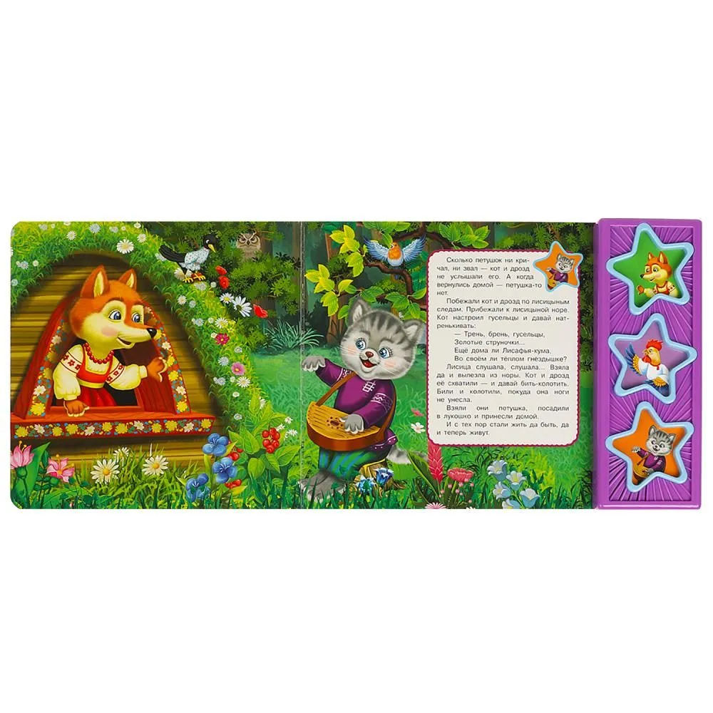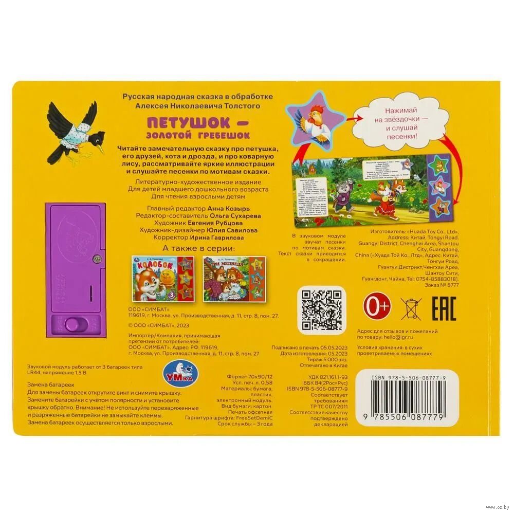 Ребёнок с удовольствием будет листать плотные страницы, рассматривать яркие картинки и, конечно, нажимать на кнопки и слушать мелодичные песенки по мотивам известной русской народной сказки. Малыш легко освоит включение звука: по нажатию на кнопку песенка включится, при втором нажатии выключится. Благодаря компактному размеру книгу удобно взять с собой в дорогу.