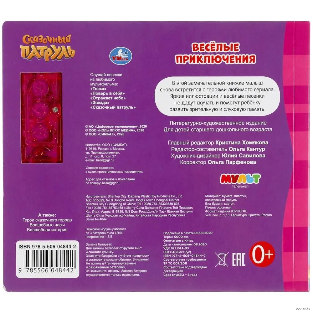Красочная музыкальная книга расскажет малышу о приключениях его любимых героев. А песенки сделают чтение ещё более увлекательным. Ребёнок легко освоит включение звука: по нажатию на кнопку звук включится, при втором нажатии выключится. Книжка сделана из плотного картона, поэтому родители могут не опасаться за её сохранность. Благодаря компактному формату её удобно брать с собой.