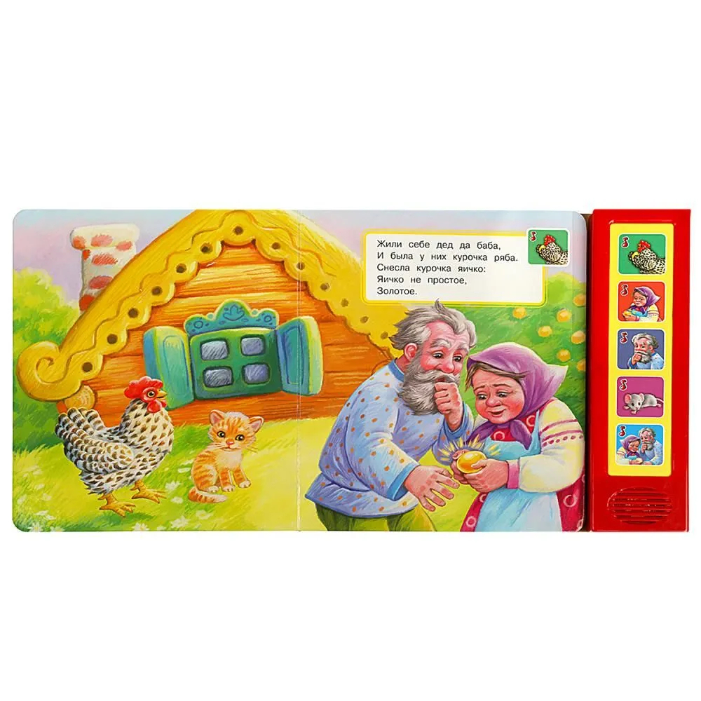 Ребёнок с удовольствием будет листать плотные страницы, рассматривать яркие картинки, вместе с родителями читать интересную сказку и, конечно, нажимать на кнопки и слушать весёлые песенки. Малыш легко освоит включение звука: по нажатию на кнопку песенка включится, при втором нажатии выключится. Благодаря компактному размеру книгу удобно взять с собой в дорогу.