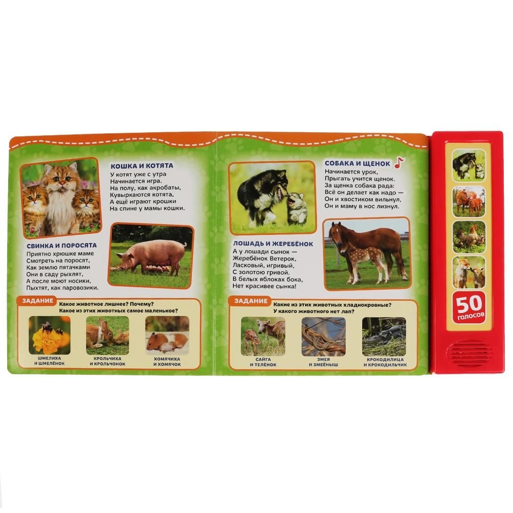 Энциклопедия в игровой форме познакомит малыша с животными и их голосами. Добрые стихи расскажут ребёнку о том как называются животные и их детёныши. Нажимайте на кнопки и слушайте голоса разных животных.