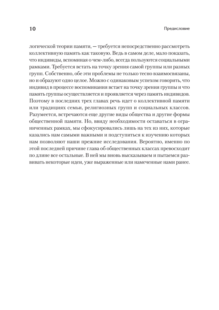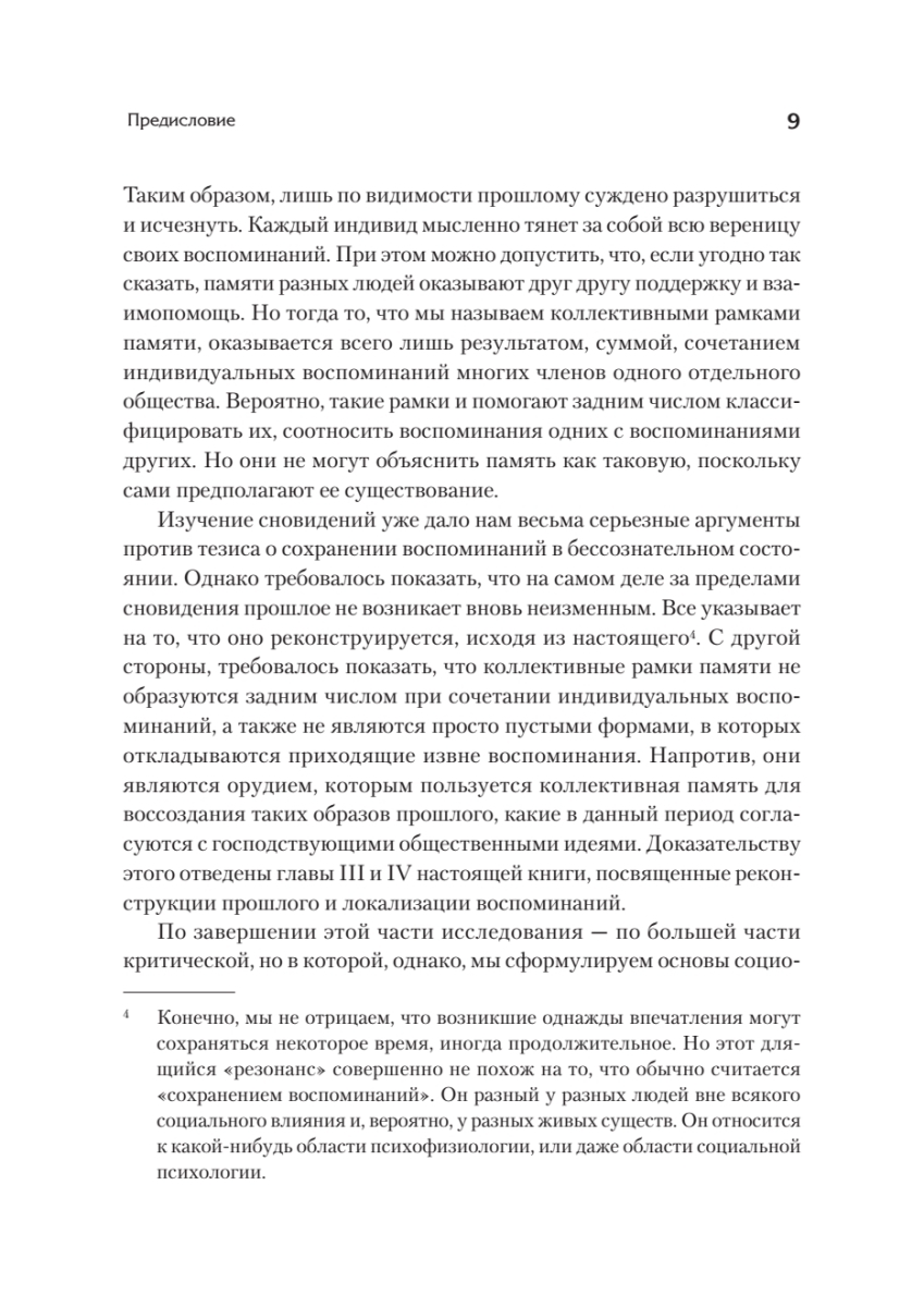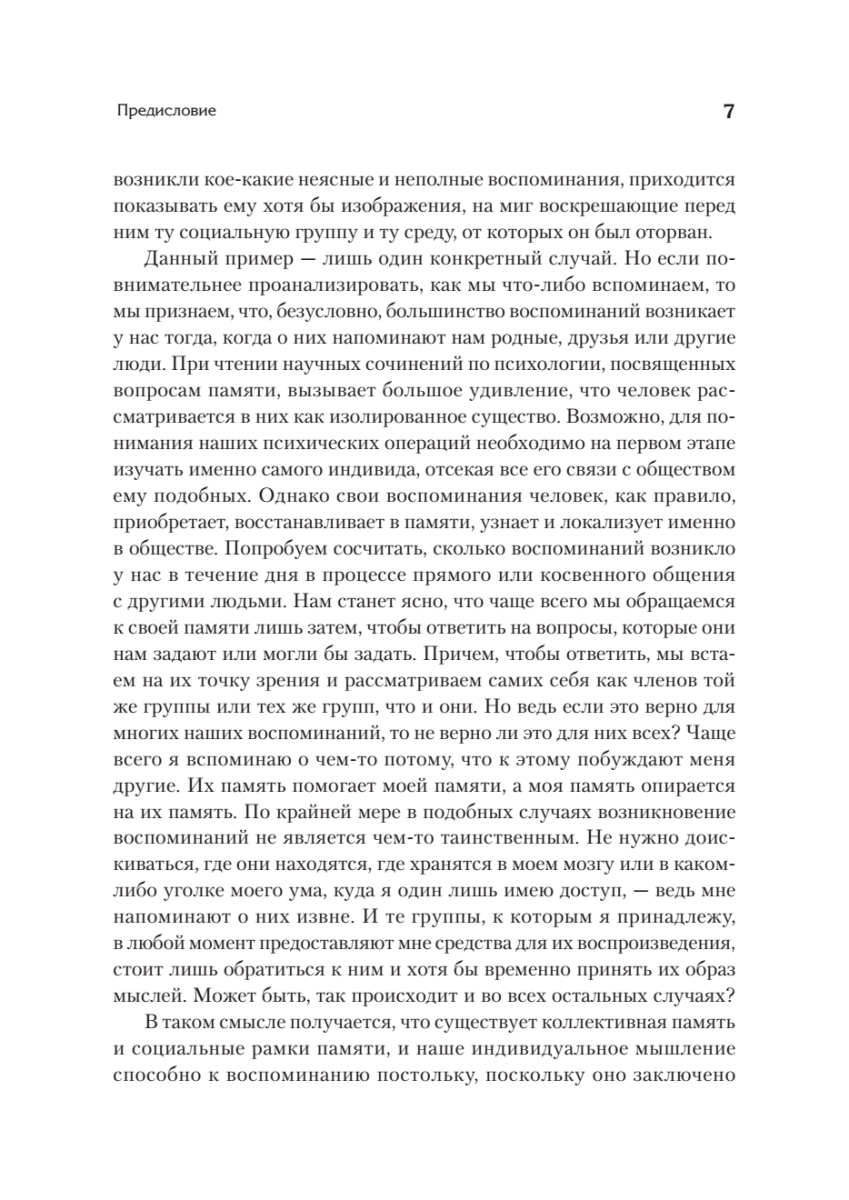 Как показывает автор, даже в сознании отдельного человека запоминание и припоминание фактов обусловлено по ряду важнейших параметров "рамками" и "ориентирами", которые создаются обществом (речью, представлениями о пространстве и времени и т. д.).