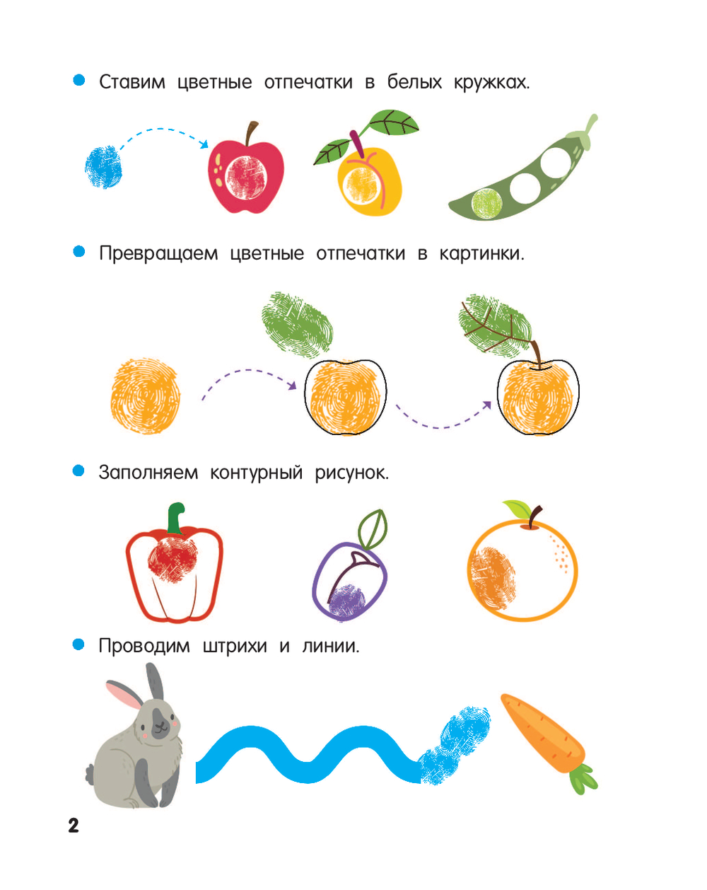 Фрукты и овощи. Рисуем пальчиками. Раскраска с заданиями