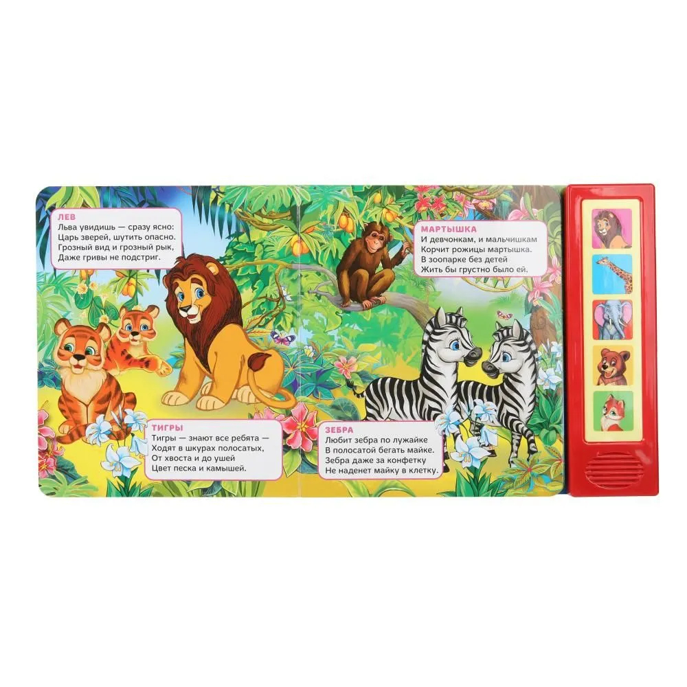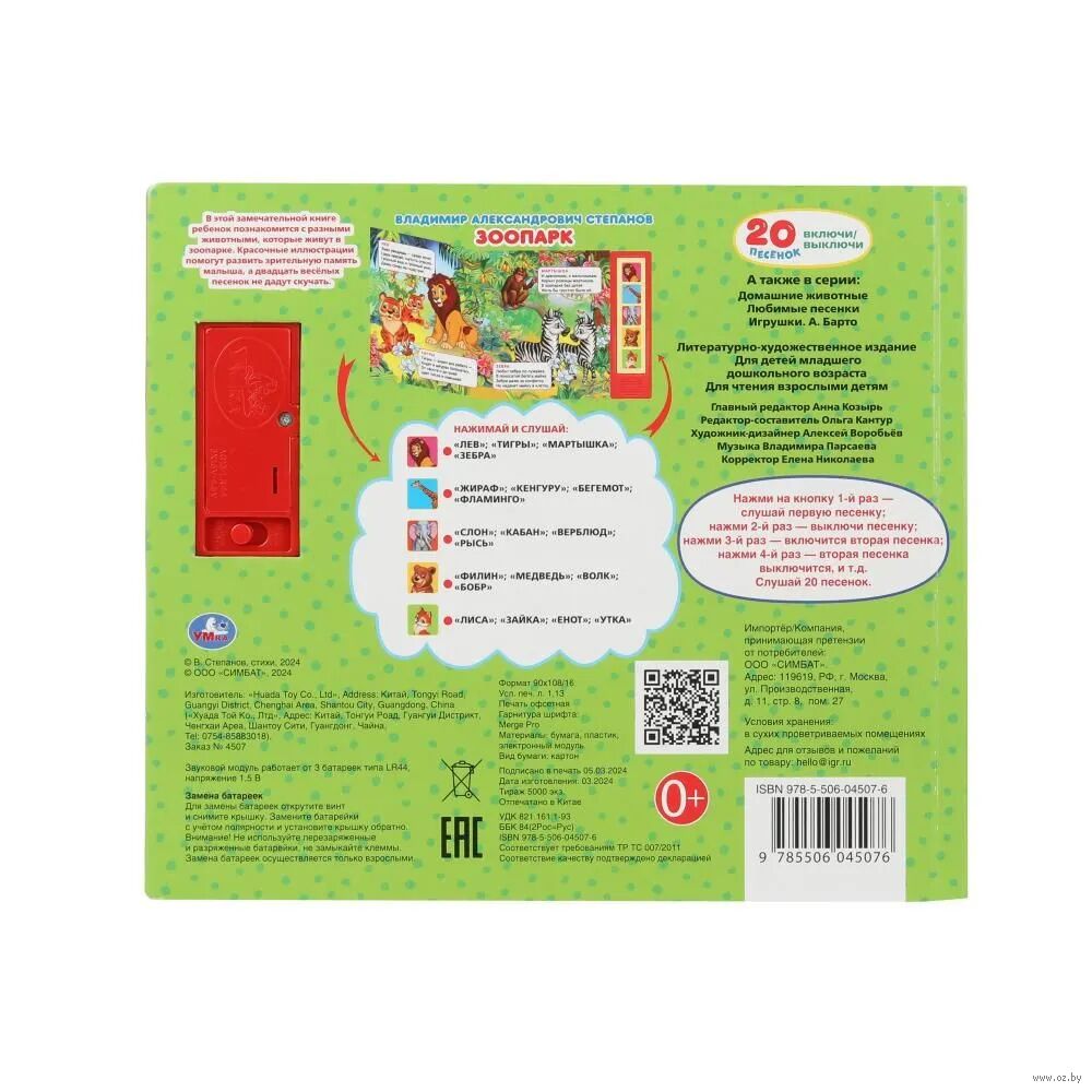 Малыш с удовольствием будет листать плотные страницы, рассматривать яркие иллюстрации, нажимать на звуковые кнопки и слушать весёлые песенки. Он легко освоит включение звука: по нажатию на кнопку звук включится, при втором нажатии выключится. На каждой кнопочке записано по 4 песенки. Книга сделана из плотного картона, поэтому родители могут не опасаться, что ребёнок порвёт странички. Благодаря удобному формату книгу можно взять с собой в путешествие.