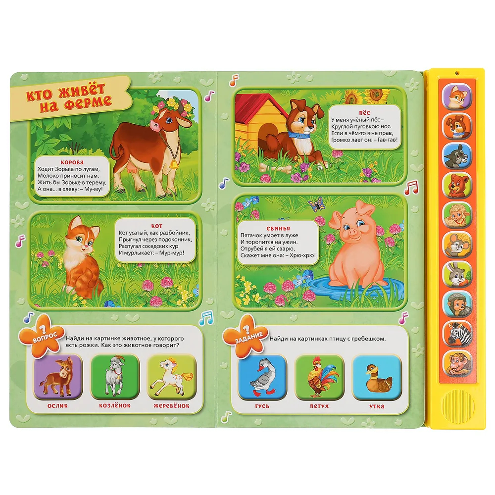 В этой детской книге скрыты особенности, которые делают ее по-настоящему волшебной. Всего одно нажатие на звуковую кнопку, и вы услышите песенки, а когда вашему малышу захочется изучить картинки ближе, эта книжка-игрушка порадует его яркими красками и милым дизайном.
