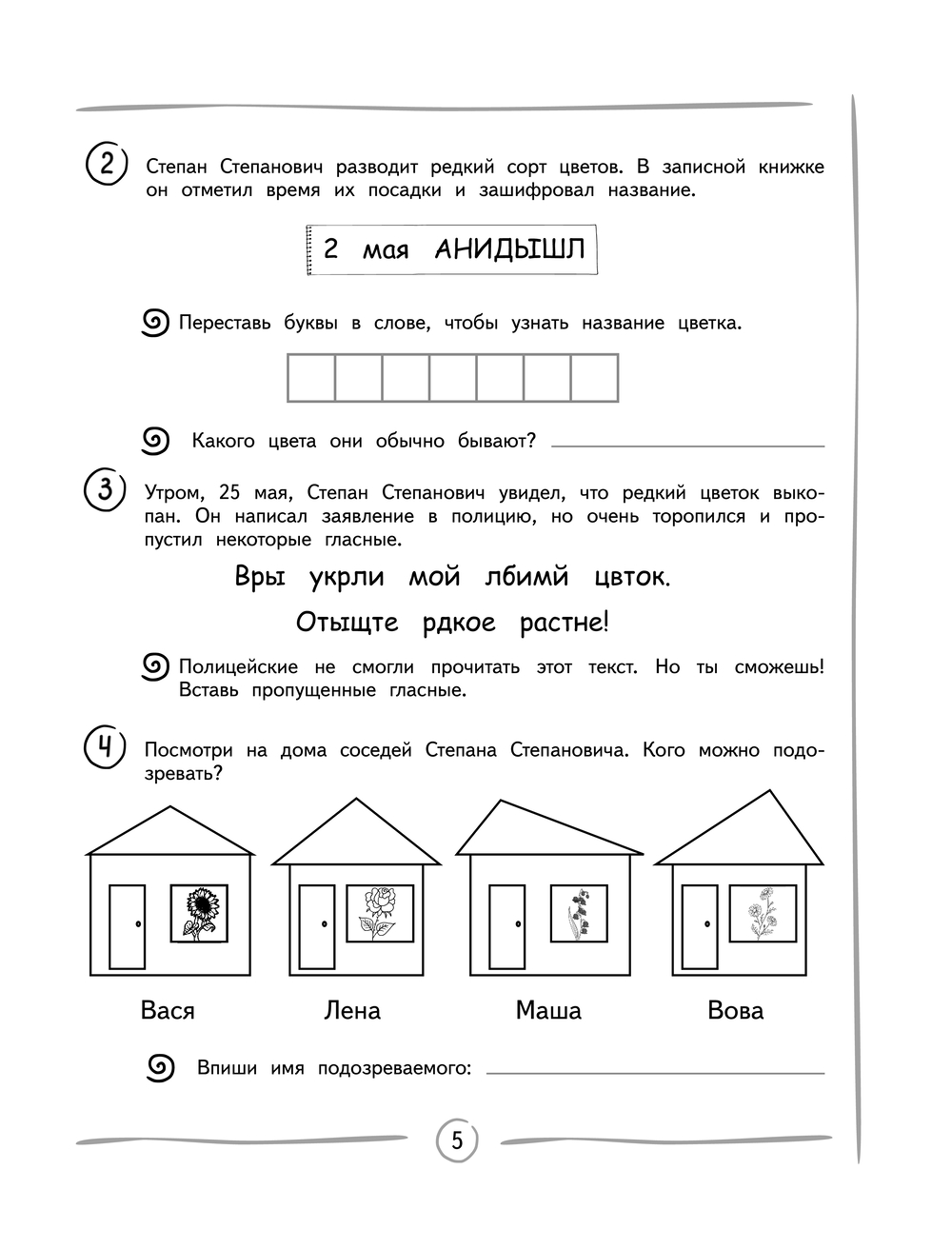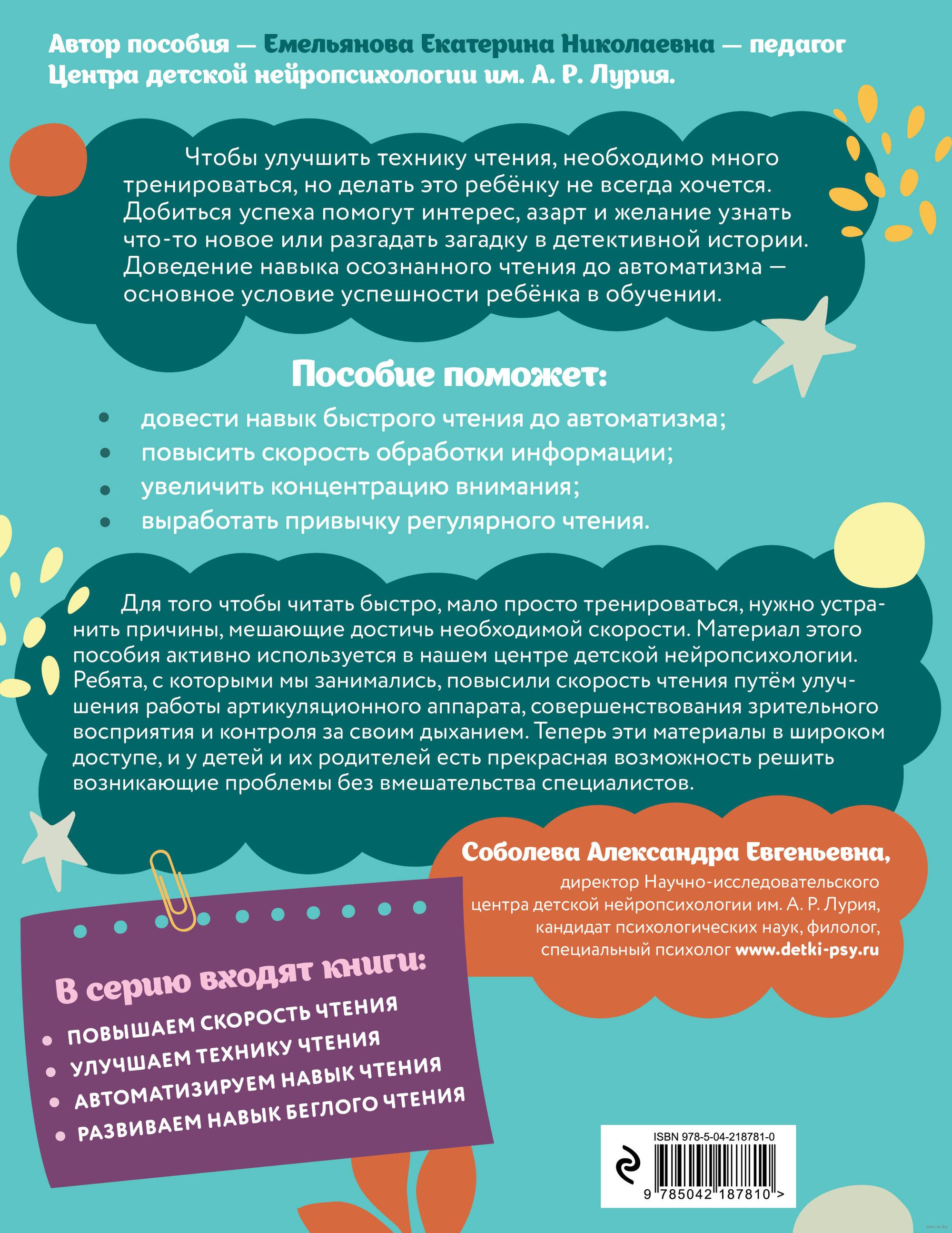 Цель пособия – воспитать ученика, который читает быстро и осознанно. Тренажер включает в себя 7 детективных историй, распутывая которые ребенок будет решать увлекательные логические загадки. В конце он сможет полностью прочитать историю и понять, все ли задания были сделаны верно. Выполняя упражнения, ребёнок сможет улучшить умения, необходимые ему для развития навыка быстрого чтения, и узнать много интересного.