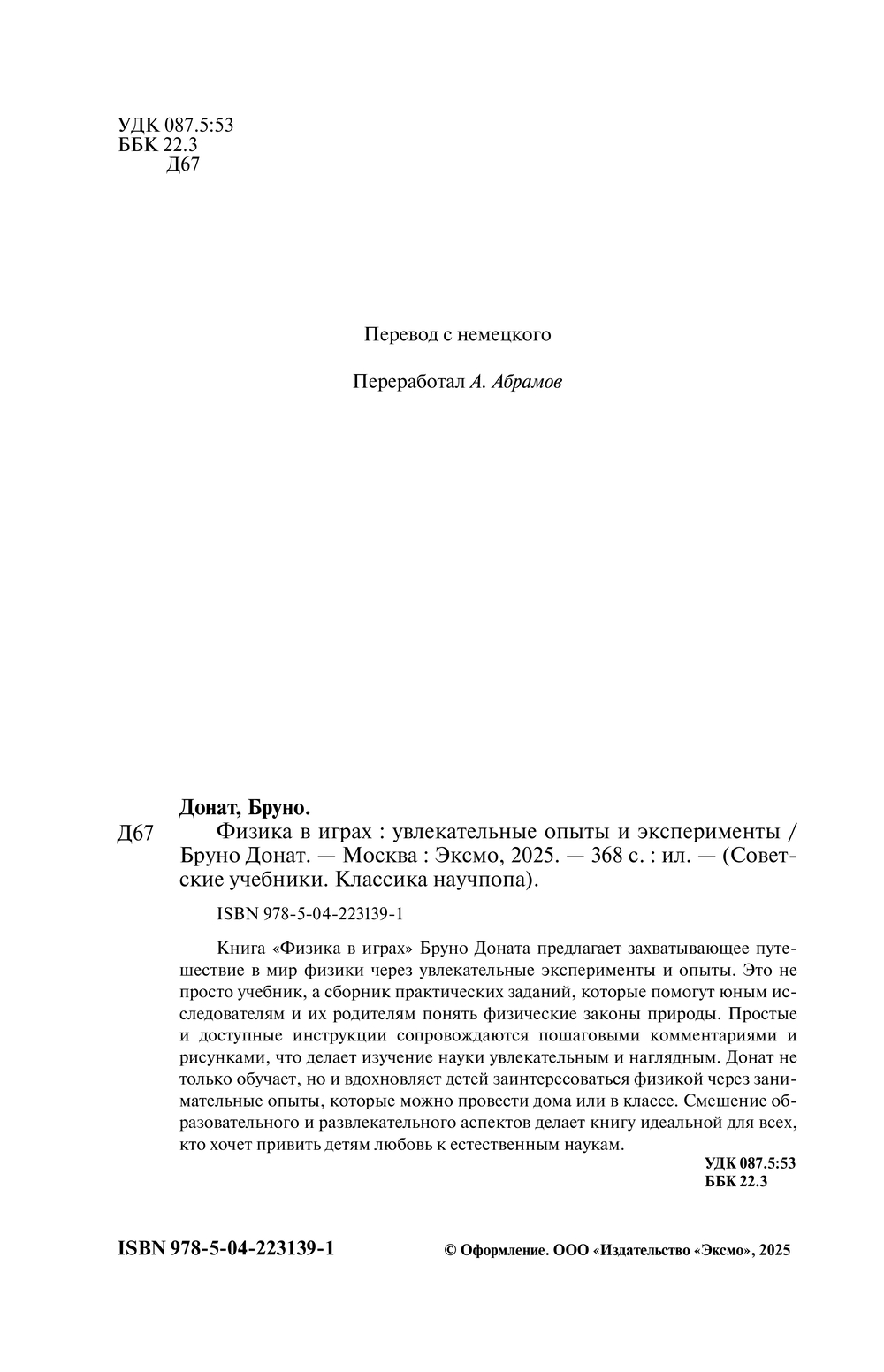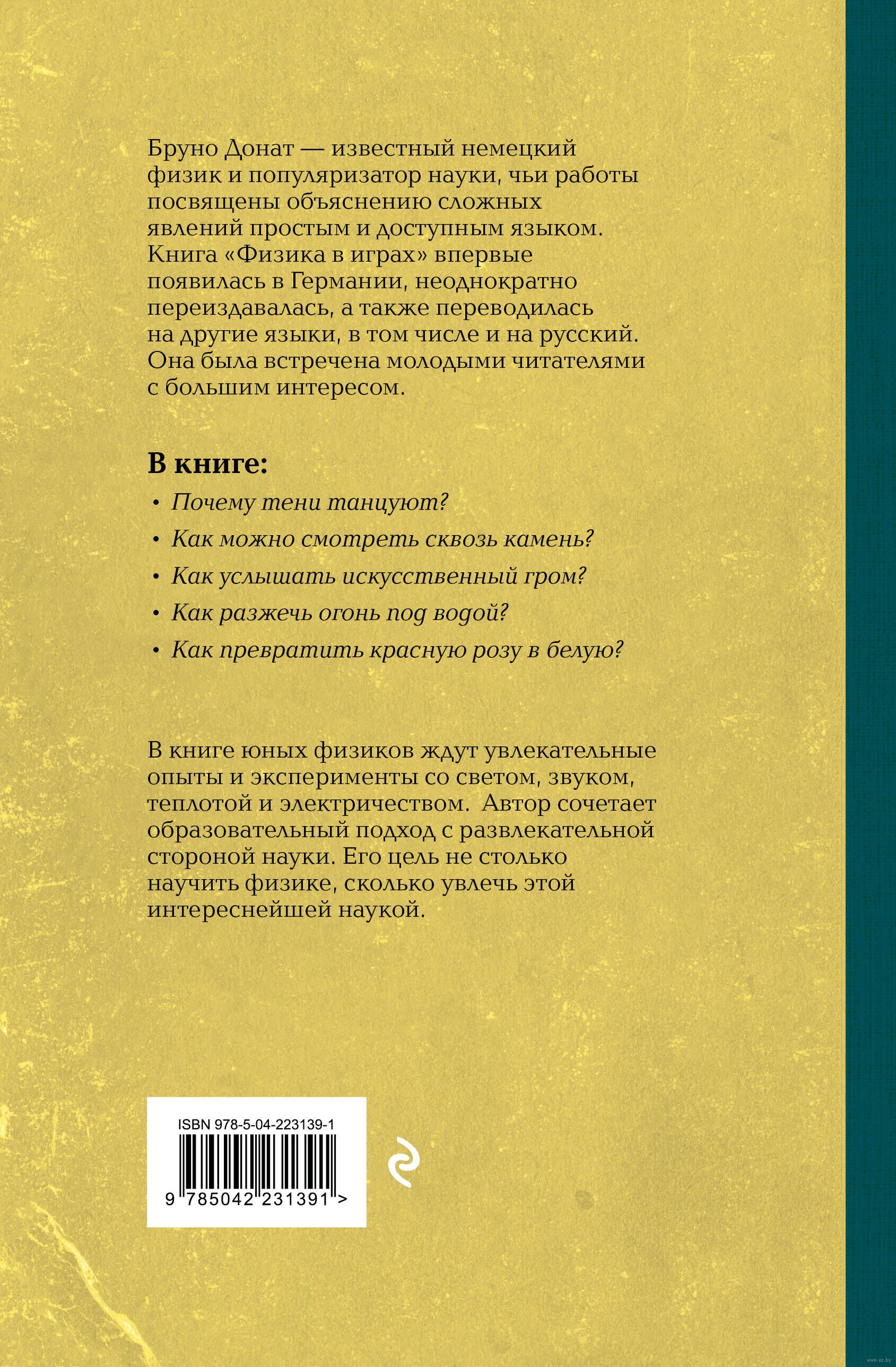 Книга "Физика в играх" Бруно Доната предлагает захватывающее путешествие в мир физики через увлекательные эксперименты и опыты. Это не просто учебник, а сборник практических заданий, которые помогут юным исследователям и их родителям понять физические законы природы. Простые и доступные инструкции сопровождаются пошаговыми комментариями и рисунками, что делает изучение науки увлекательным и наглядным. Донат не только обучает, но и вдохновляет детей заинтересоваться физикой через занимательные опыты, которые можно провести дома или в классе. Смешение образовательного и развлекательного аспектов делает книгу идеальной для всех, кто хочет привить детям любовь к естественным наукам.