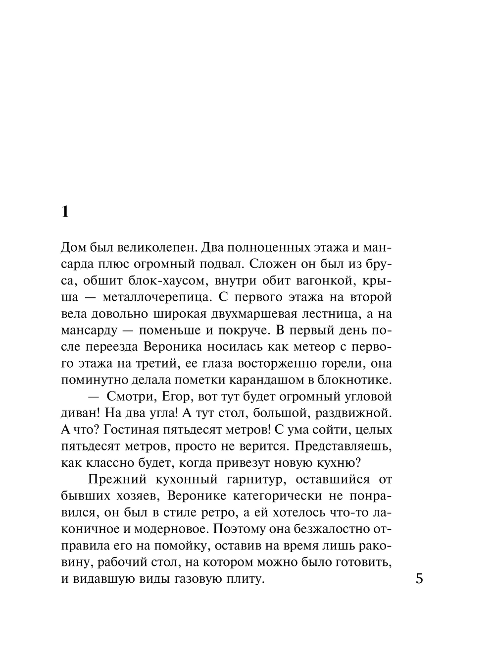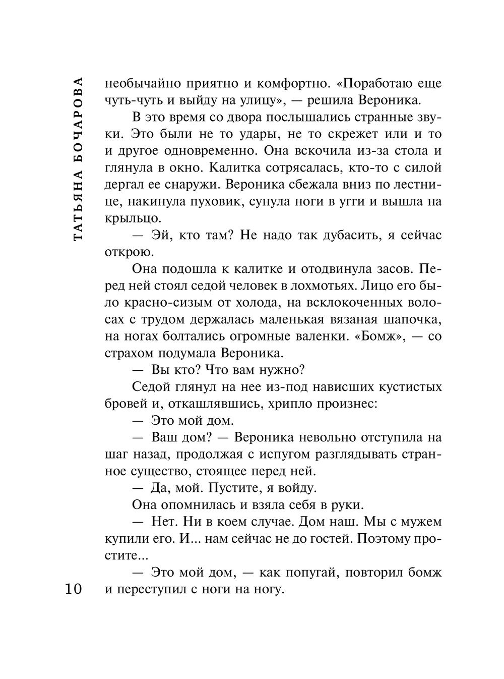 Ника и ее муж Егор давно мечтали жить в собственном загородном доме, и вот их мечта осуществилась. Они купили большой бревенчатый дом в глухой деревушке Плацкинино, и Ника с энтузиазмом взялась за его обустройство. Однако первые же дни на новом месте омрачились неприятностями: к калитке стал являться странный старик и просить Нику впустить его в дом, говоря, что он принадлежит ему! Ника попыталась прогнать его, в ответ бродяга предсказал ей гибель. Вскоре действительно произошел несчастный случай, сильно напугавший Нику и заставивший задуматься, стоило ли ей так кардинально менять свою жизнь…