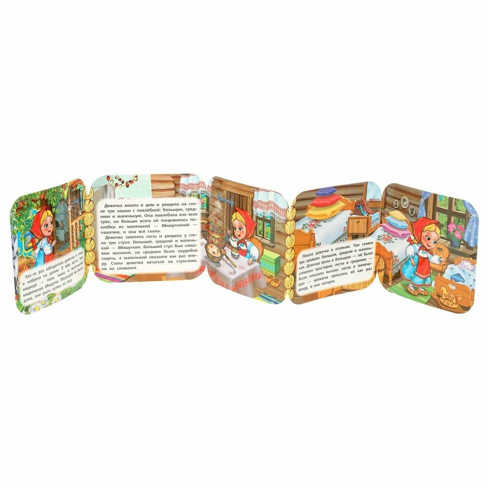 Ребёнок с удовольствием будет разглядывать яркие картинки и слушать интересную сказочную историю, которую ему прочитают взрослые. Страницы книжки, выполненные из картона, собраны в гармошку: их легко листать, а также можно распрямить во всю длину. Благодаря компактному размеру в собранном виде издание удобно брать с собой в путешествие.