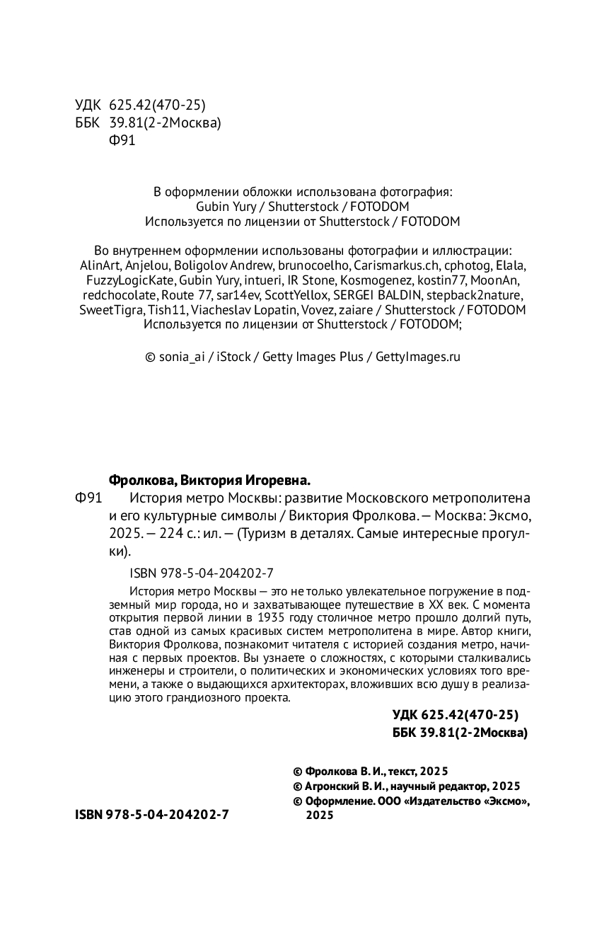 История метро Москвы – это не только увлекательное погружение в подземный мир города, но и захватывающее путешествие в XX век. С момента открытия первой линии в 1935 году, столичное метро прошло долгий путь, став одной из самых красивых систем метрополитена в мире. Автор книги, Виктория Фролкова, познакомит читателя с историей создания метро, начиная с первых проектов. Вы узнаете о сложностях, с которыми сталкивались инженеры и строители, о политических и экономических условиях того времени, а также о выдающихся архитекторах, вложивших всю душу в реализацию этого грандиозного проекта.