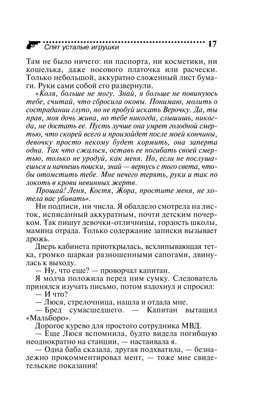 Любительнице частного сыска Даше Васильевой противопоказано выходить из дома – обязательно попадет в какую-нибудь историю… На этот раз она стала свидетельницей того, как из окна выбросилась молодая женщина. Милицию не заинтересовало это событие, но Дарье захотелось узнать причину столь отчаянного поступка. Она принялась разыскивать людей, которые знали самоубийцу. И тут выяснилось, что четверо знакомых погибшей недавно ушли из жизни точно таким же образом. Даша на сто процентов уверена, что таких совпадений не бывает…