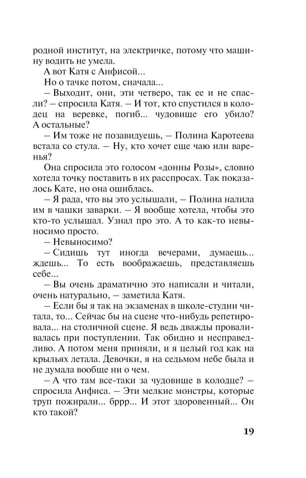 Их было четверо... Трое из них уже мертвы. Осталась она, Полина Каротеева. Она еще жива. Но кто-то жаждет и ее смерти. Катя Петровская, криминальный обозреватель Пресс-центра ГУВД Московской области, пыталась разговорить Полину, чтобы наконец-то узнать правду о том старом преступлении, когда в заброшенном колодце страшной смертью от ран умирал связанный Женя Лазарев... Что же все-таки произошло несколько лет назад, кто же из них четверых настоящий убийца? И почему спустя столько времени кто-то стал убивать одного за другим всех участников того жуткого дела? Наконец Полина разговорилась, рассказала о случившемся в ту злополучную ночь. Рассказала... и через десять минут умерла от руки убийцы. Но на этом он не успокоился. Это еще не конец...