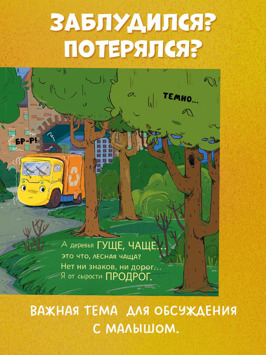 Новые приключения любимого героя малышей – мусоровоза. Ритмичные стихи, чудесные сюжетные иллюстрации и важная тема для обсуждения с ребенком.