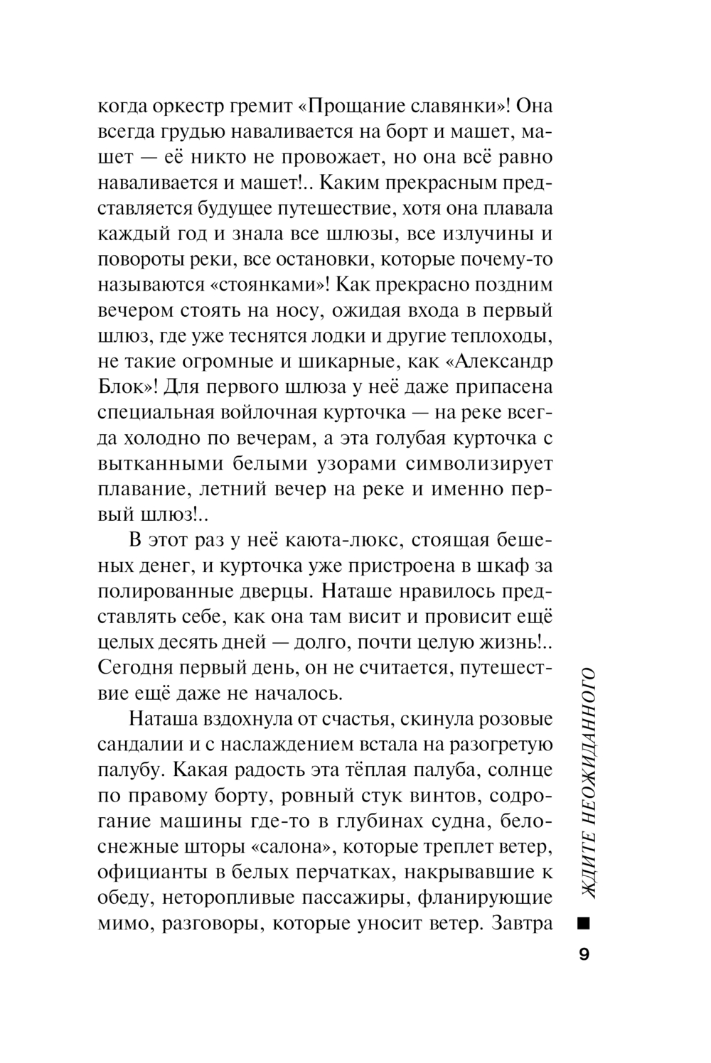 Отправляясь в свой последний отпуск на теплоходе, Таша дает себе обещание: ничто не испортит ее путешествие… Но в первый же вечер за бортом оказываются человек и собака, Таша безрассудно кидается за ними. И это только начало зловещих событий. У Розалии Карловны пропадает чемодан с драгоценностями, следом убивают судового доктора. Таше кажется страшно важным разобраться в происходящем – чтобы жить дальше. На помощь ей приходит Степан Петрович. Он нежно ухаживает за ней, и вдруг становится ясно: нет никакого вселенского одиночества, она больше не одна – рядом замечательные люди, и со всех сторон ее защищает любовь…