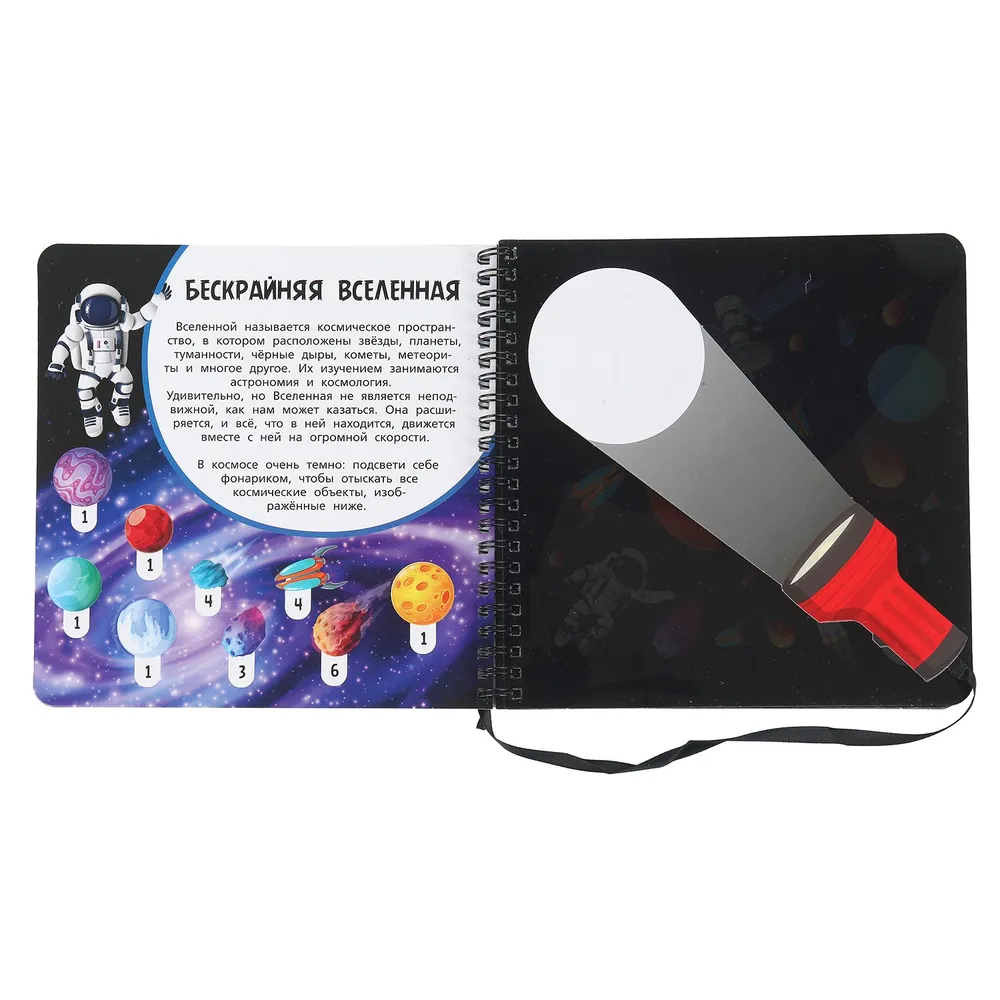Эта удивительная книжка для тех, кто хочет почувствовать себя настоящим сыщиком, кто любит искать и находить. А поможет в поисках чудо-фонарик: просто поместите его между чёрной и цветной страницами и медленно водите, «подсвечивая» спрятанные на рисунке предметы. Такое увлекательное занятие обязательно понравится ребёнку, он с удовольствием проведёт время с этой книгой, а если позвать друзей, то поиски станут ещё интереснее и веселее!