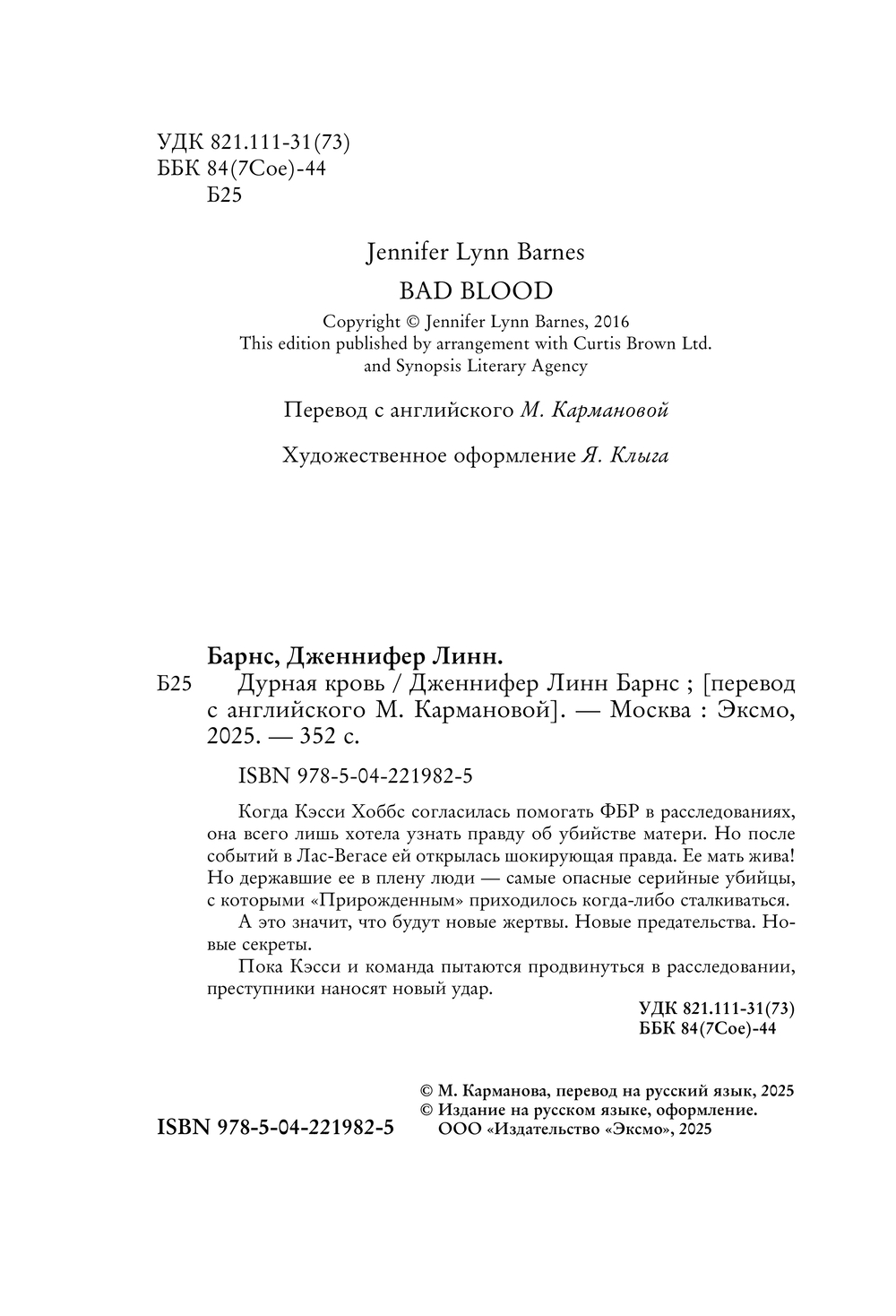 Когда Кэсси Хоббс согласилась помогать ФБР в расследованиях, она всего лишь хотела узнать правду об убийстве матери. Но после событий в Лас-Вегасе ей открылась шокирующая правда. Ее мать жива! Но державшие ее в плену люди – самые опасные серийные убийцы, с которыми "Прирожденным" приходилось когда-либо сталкиваться.
