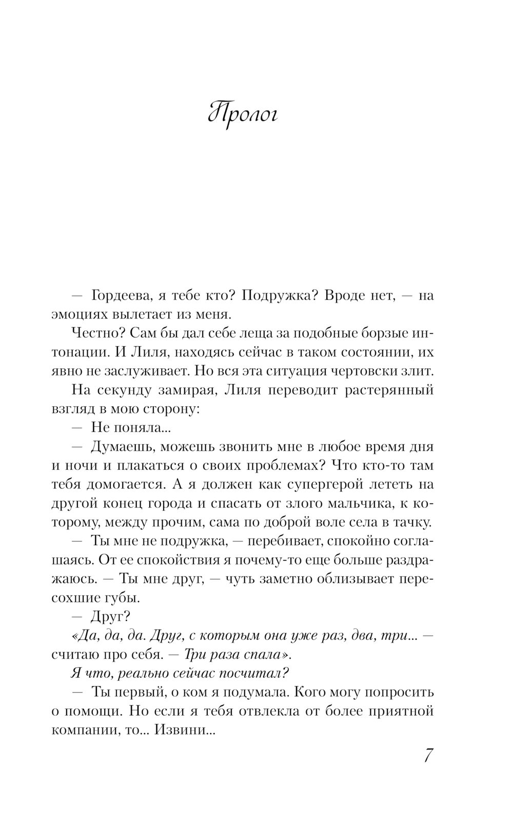 Лиля Гордеева в глазах Артема Соковича – загадочная и неприступная девушка. В таких не влюбляются с первого взгляда. Ведь надо хорошенько постараться, чтобы рассмотреть ее истинную красоту под всеми этими балахонами и вечно недовольным выражением лица. Лично у Артема на это нет ни времени, ни желания. Да и девчонок вокруг, что ли, мало? И вот от Гордеевой ему неожиданно поступает "деловое" предложение, от которого он даже теряется…