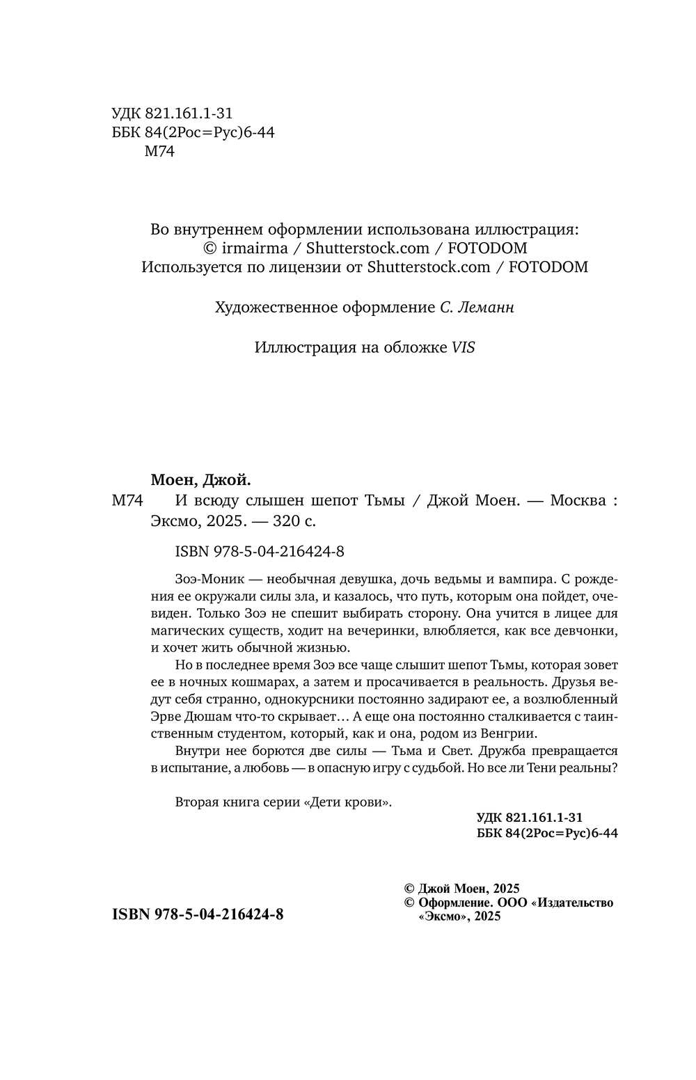 Но в последнее время Зоэ все чаще слышит шепот Тьмы, которая зовет ее в ночных кошмарах, а затем и просачивается в реальность. Друзья ведут себя странно, однокурсники постоянно задирают ее, а возлюбленный Эрве Дюшарм что-то скрывает… А еще она постоянно сталкивается с таинственным студентом, который, как и она, родом из Венгрии.