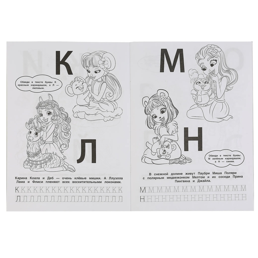 Раскраска с фольгой. Первая раскраска. Enchantimals. Учим буквы: