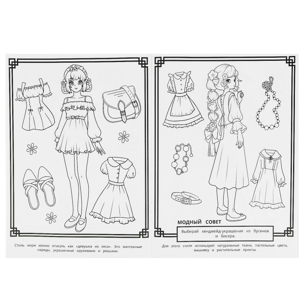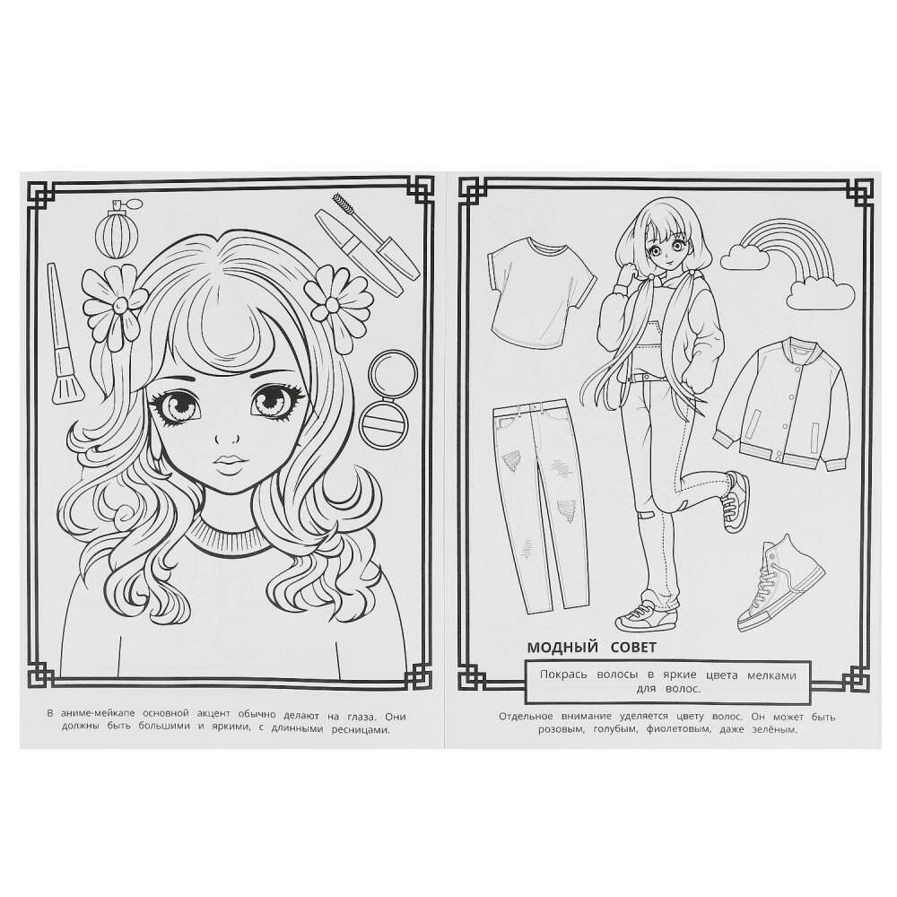 Раскраска "Аниме. Главные тренды" из серии "Модный показ" приглашает детей порисовать и пофантазировать: