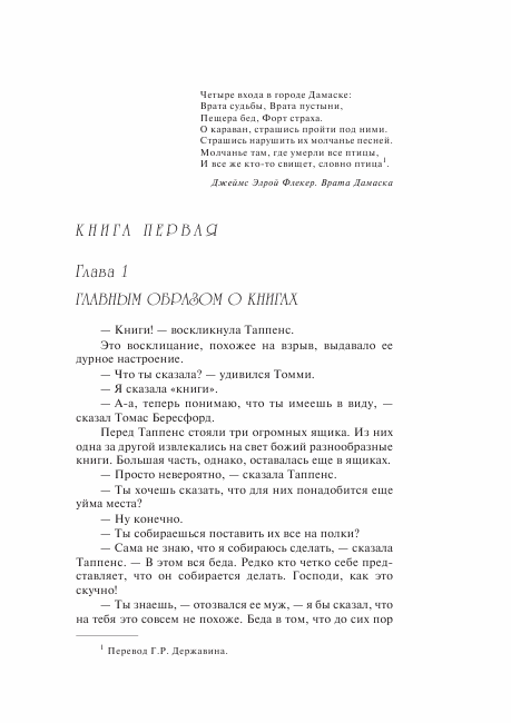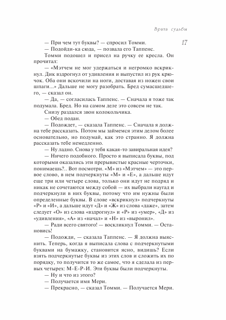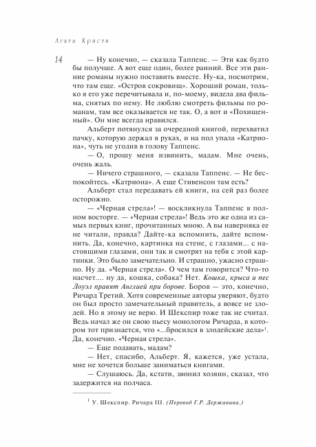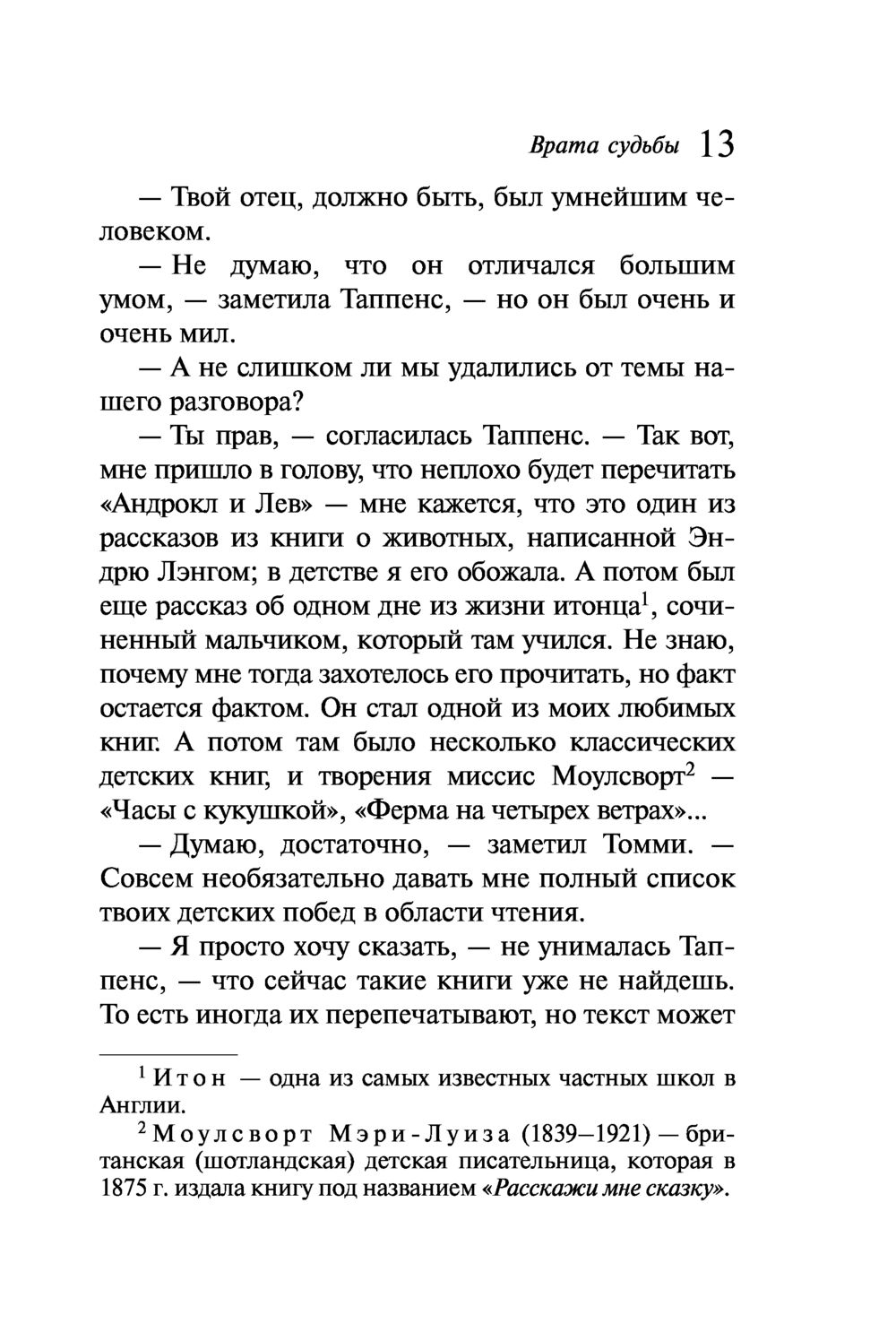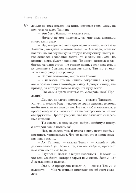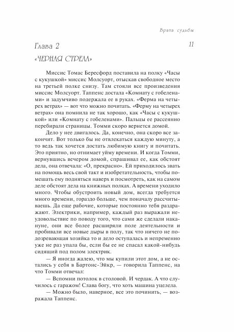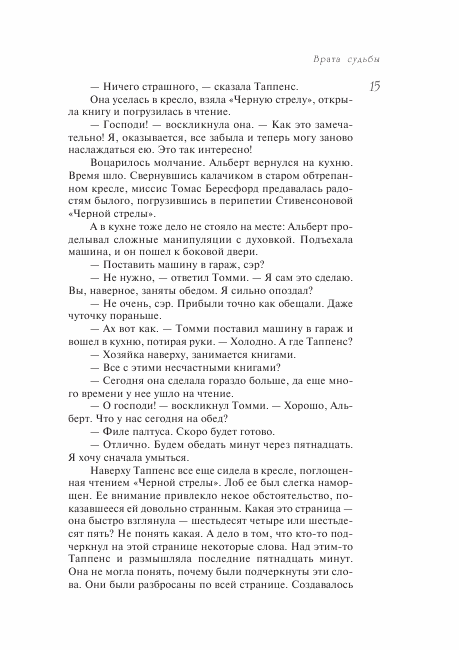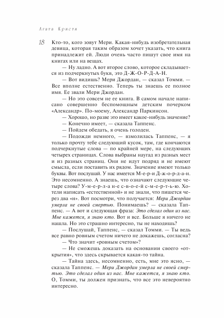 На старости лет Томми и Таппенс Бересфорды стали счастливыми обладателями старого дома в деревне. Вместе с имуществом они унаследовали некоторые безделушки, в том числе коллекцию старых книг. И вот однажды, перебирая их, Таппенс неожиданно обратила внимание на подчеркнутые слова в романе Стивенсона "Черная стрела", объединив которые, можно было прочесть фразу: "Мэри Джордан умерла не своей смертью"...