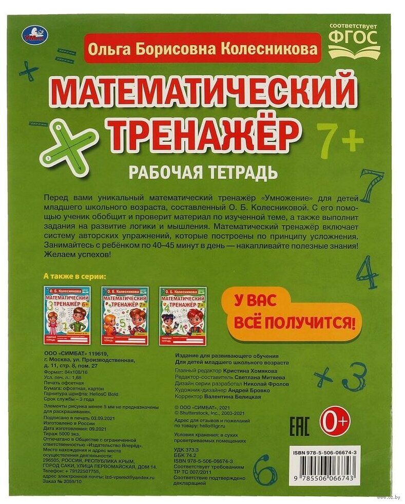 Рабочая тетрадь "О. Б. Колесникова. Математический тренажёр. Умножение" поможет ребёнку освоить азы математики: