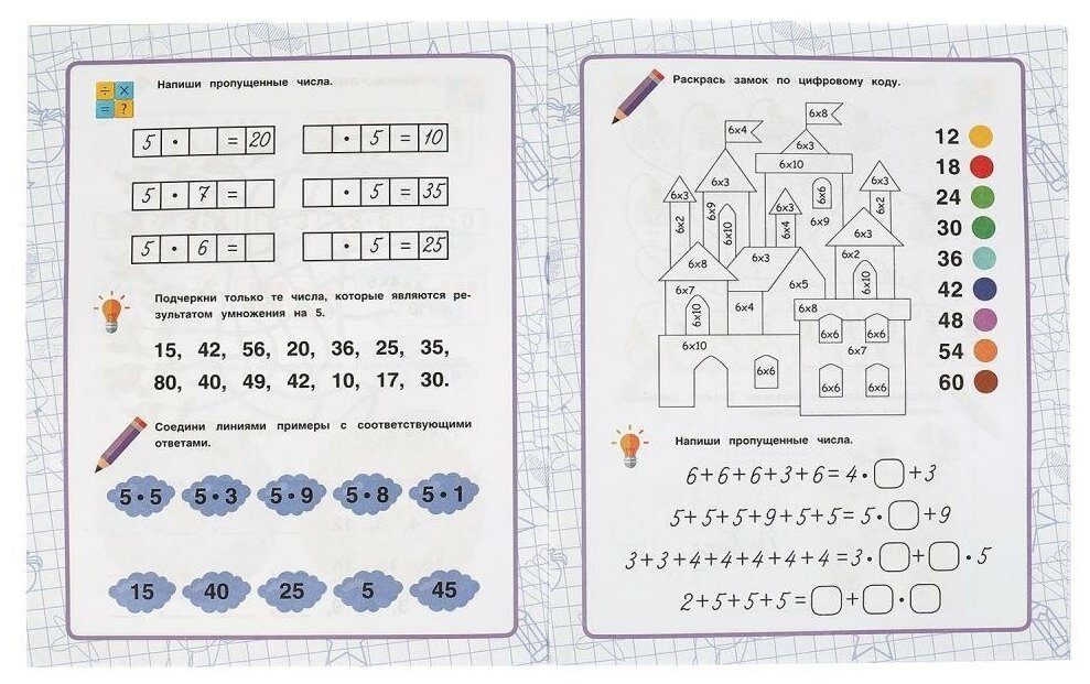 Данная тетрадь содержит занимательные упражнения по авторской методике О. Б. Колесниковой. Интересные задания не дадут маленькому любознайке заскучать, он будет с удовольствием их выполнять и без труда решать примеры на умножение.