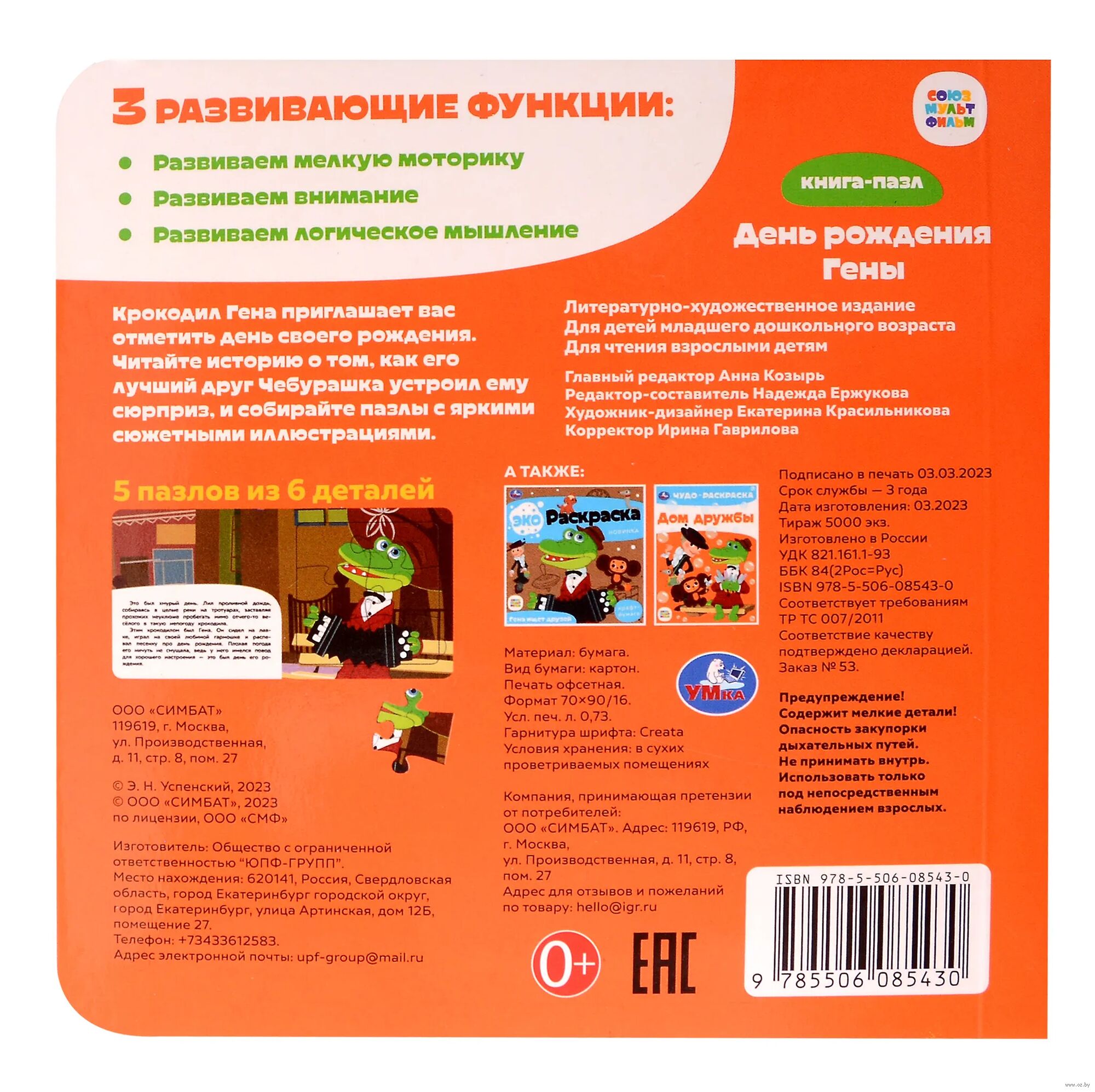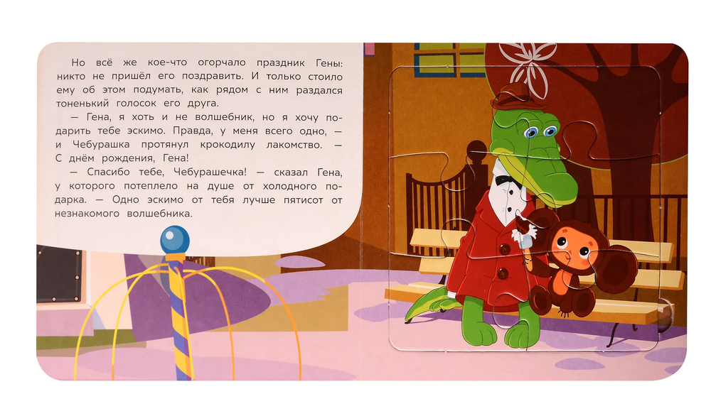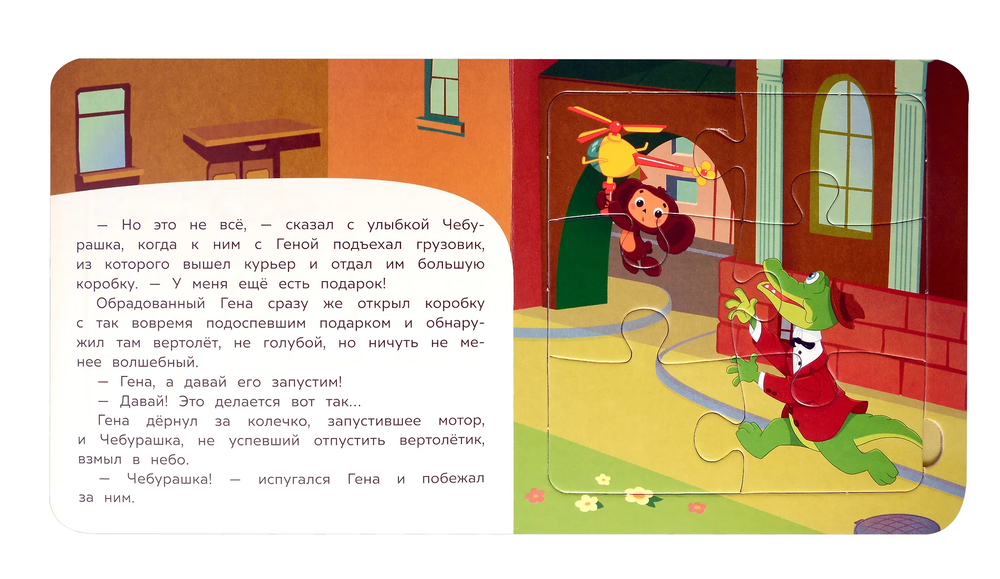 Данная книга выполняет сразу 2 функции: это и книга для чтения, и игра в пазлы. На каждом развороте малыша ждёт интересное повествование, а также яркий пазл с изображением персонажей любимого мультфильма. Книжка изготовлена из плотного картона, поэтому мамы могут не опасаться, что ребёнок порвёт странички. Благодаря удобному формату книгу можно взять с собой в дорогу.