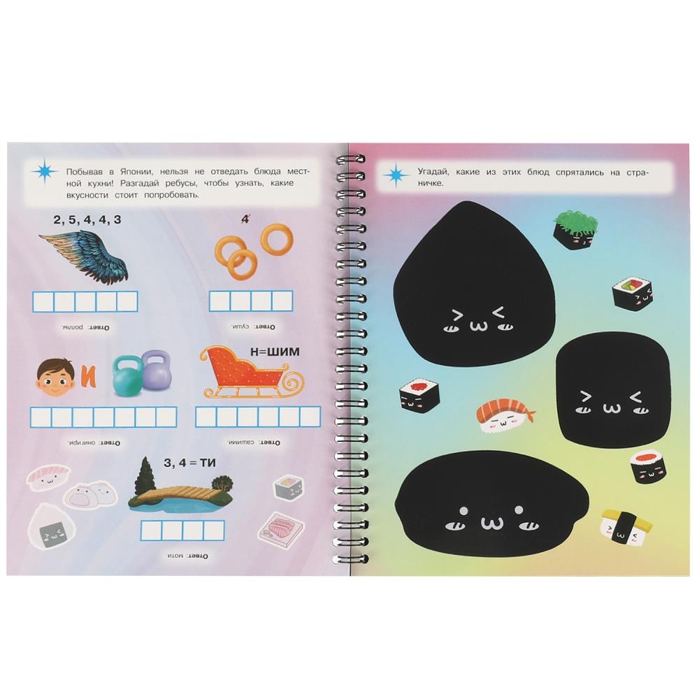 Данное издание представляет собой блокнот на пружинке с красивыми гравюрами и занимательными заданиями. Если провести с помощью волшебной палочки по стираемому слою на специальной странице с чёрным фоном, то на ней проявится рисунок, который можно заштриховать, заполнить его контур, провести отдельные линии. В итоге получится картинка с милыми цветными персонажами. Следуйте за своей фантазией и создавайте потрясающие шедевры!