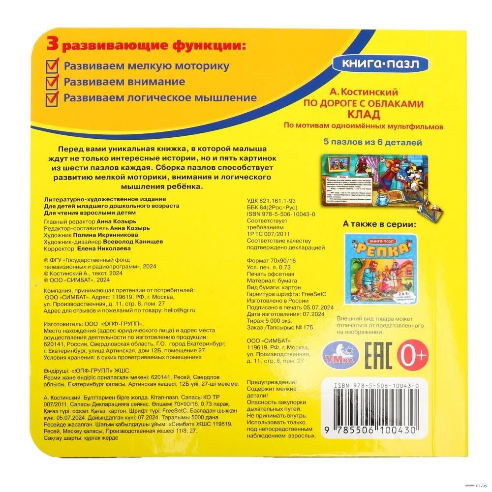 Данная книга выполняет сразу 2 функции: это и книга для чтения, и игра в пазлы. На каждом развороте малыша ждёт интересное повествование, а также яркий пазл из 6 деталей с изображением героев любимого мультфильма. Книжка изготовлена из плотного картона, поэтому мамы могут не опасаться, что ребёнок порвёт странички. Благодаря удобному формату книгу можно взять с собой в дорогу.