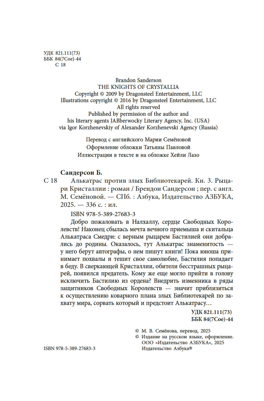 Добро пожаловать в Налхаллу, сердце Свободных Королевств! Наконец сбылась мечта вечного приемыша и скитальца Алькатраса Смедри: с верным рыцарем Бастилией они добрались до родины. Оказалось, тут Алькатрас знаменитость – у него берут автографы, о нем пишут книги! Пока юноша принимает похвалы и тешит свое самолюбие, Бастилия попадает в беду. В сверкающей Кристаллии, обители бесстрашных рыцарей, появился предатель. Кому же еще могло прийти в голову исключить Бастилию из ордена? Внедрить изменника в ряды защитников Свободных Королевств – значит приблизиться к осуществлению коварного плана злых Библиотекарей по захвату мира, сорвать который и предстоит Алькатрасу…