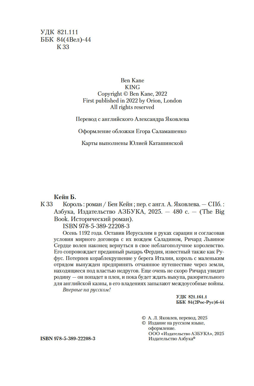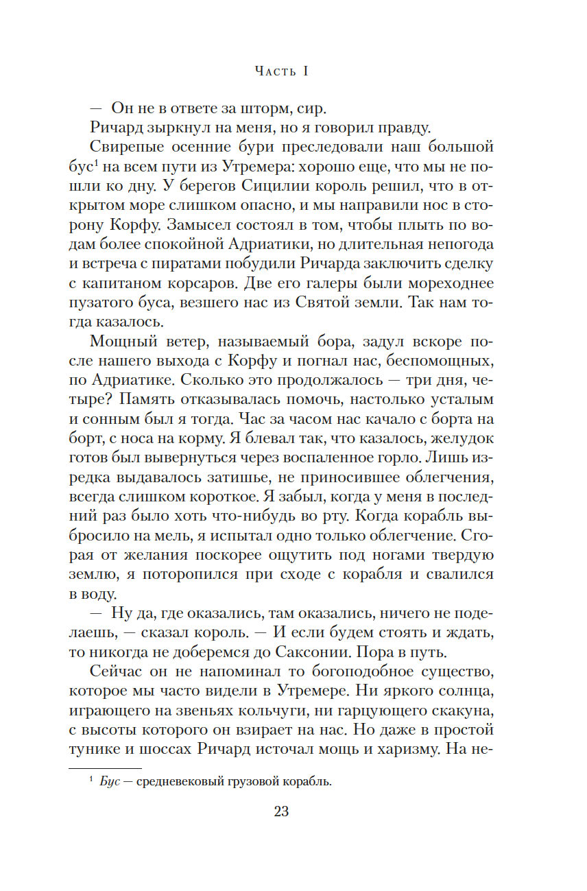 Осень 1192 года. Оставив Иерусалим в руках сарацин и согласовав условия мирного договора с их вождем Саладином, Ричард Львиное Сердце волен наконец вернуться в свое неблагополучное королевство. Его сопровождает преданный рыцарь Фердия, известный также как Руфус. Потерпев кораблекрушение у берега Италии, король с маленьким отрядом вынужден предпринять отчаянное путешествие через земли, находящиеся под властью недругов. Еще очень не скоро Ричард увидит родину – он попадет в плен, и пока будет ждать выкупа, разорительного для английской казны, в его владениях запылают междоусобные войны.