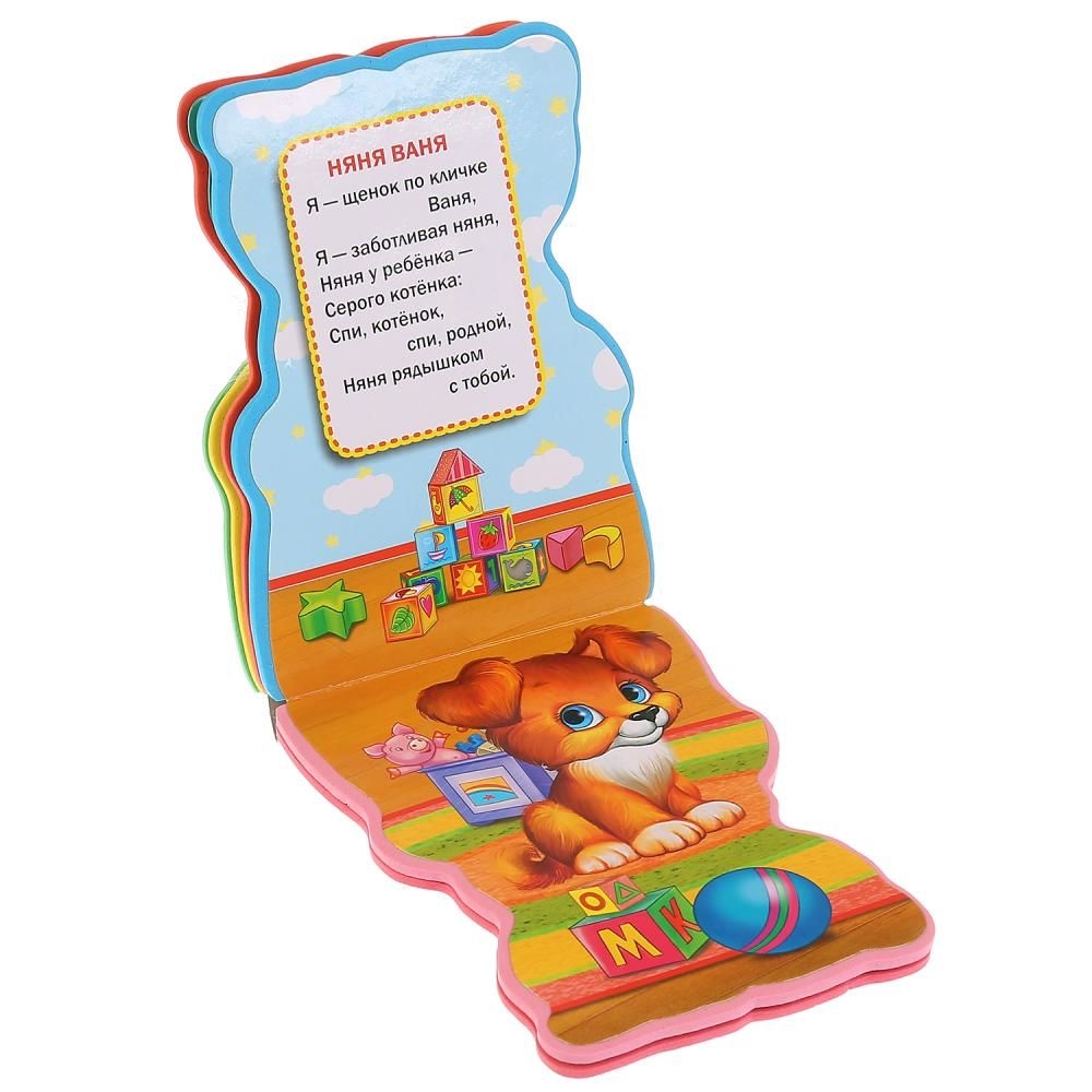 Книжка с мягкими и приятными на ощупь фигурными страничками понравится малышу и станет его любимой игрушкой. Он с удовольствие будет рассматривать большие яркие картинки и слушать интересные стихи про животных.