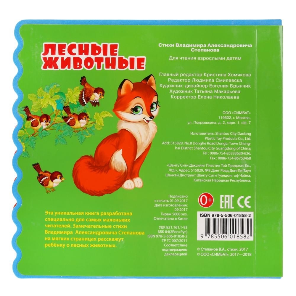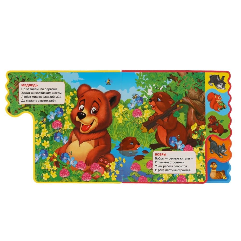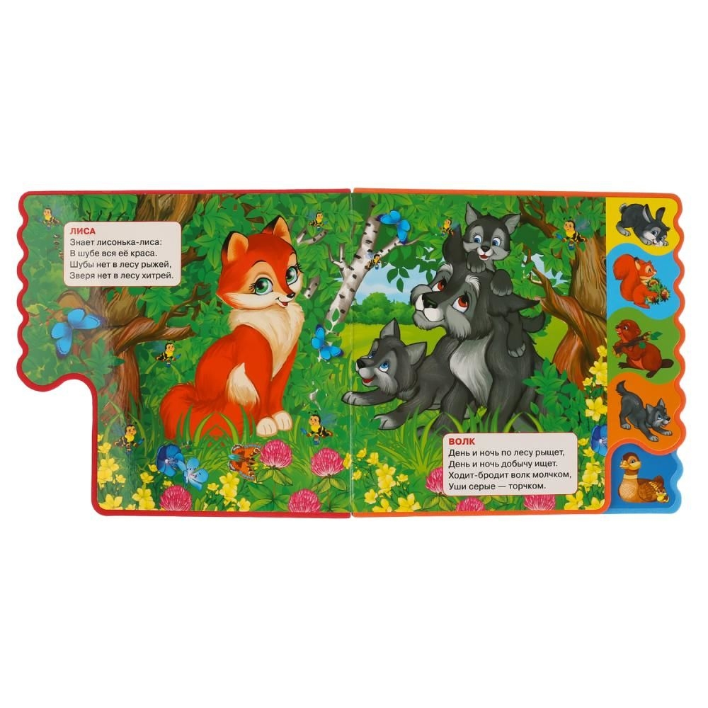 Мягкая на ощупь книжка имеет 5 разворотов с добрыми стихами про лесных животных. Оригинально оформленная книжка с фигурной вырубкой страниц обязательно привлечёт внимание ребёнка.