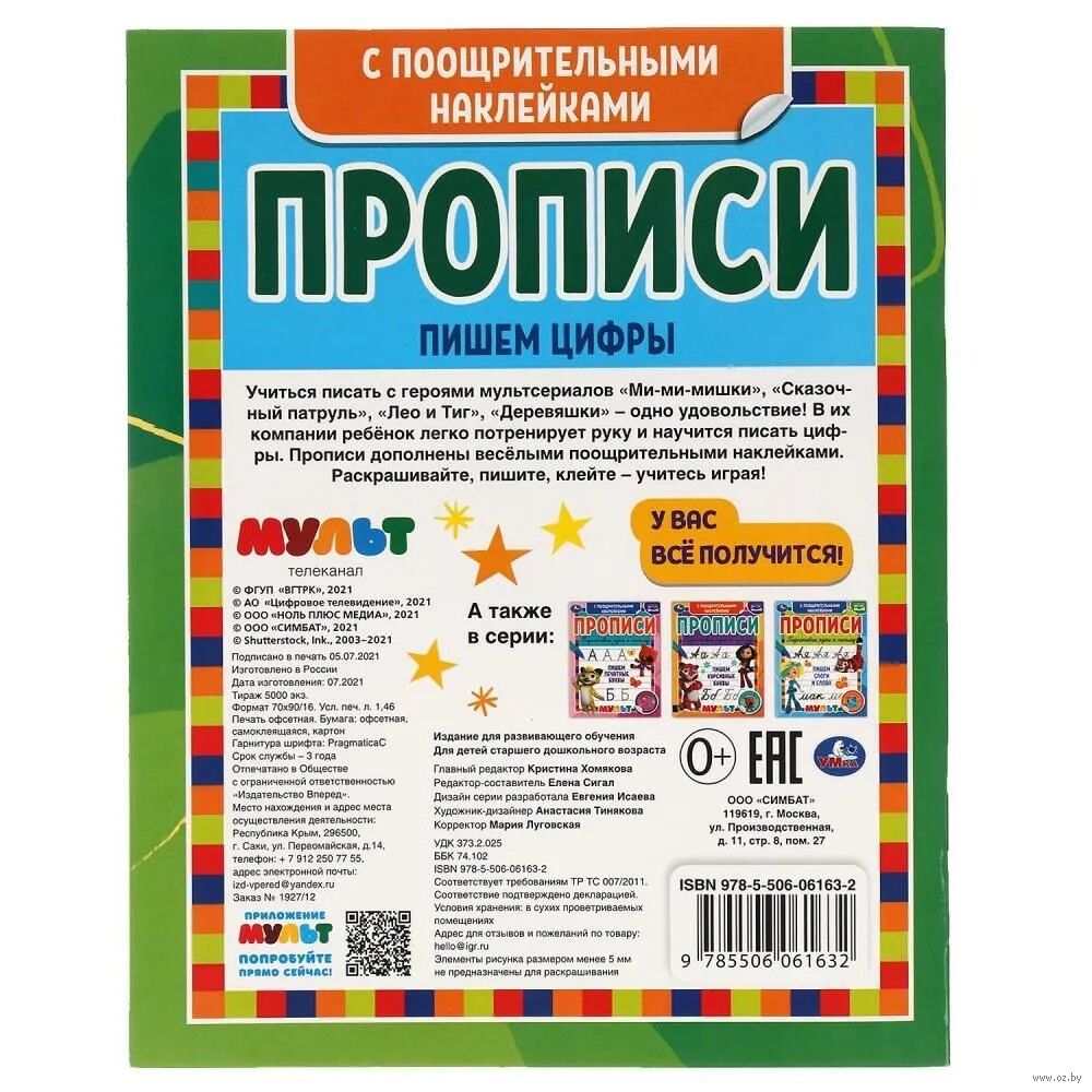 Данная книга с прописями и героями любимых мультсериалов облегчит процесс обучения ребёнка, поможет ему потренировать руку в написании цифр. А поддерживать интерес к учёбе и хвалить за успехи помогут поощрительные наклейки.