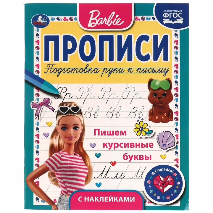 Прописи c поощрительными наклейками "Барби. Пишем курсивные буквы" непременно понравятся маленьким любознайкам: